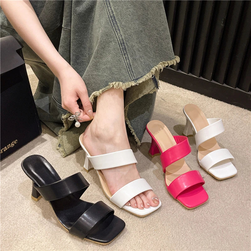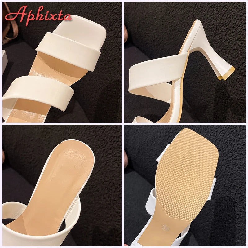 Aphixta 8cm Thin Heels Slides Square Toe Straps Sandals Elegant Women Slippers Outside Mujer Concise Party Dress Shoes Size 45