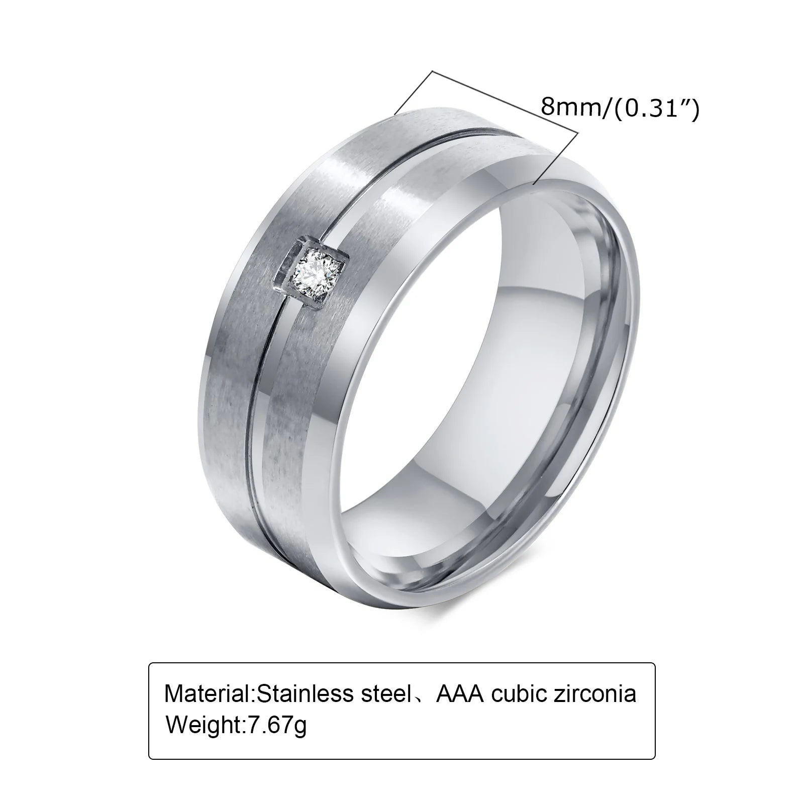 Vnox 8mm Men's Wedding Band, AAA CZ Stone Solitaire Ring, Matte Stainless Steel Grooved Line Ring, Simple Casual Bridegroom Ring