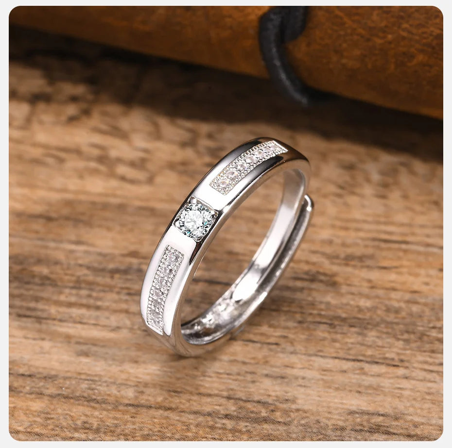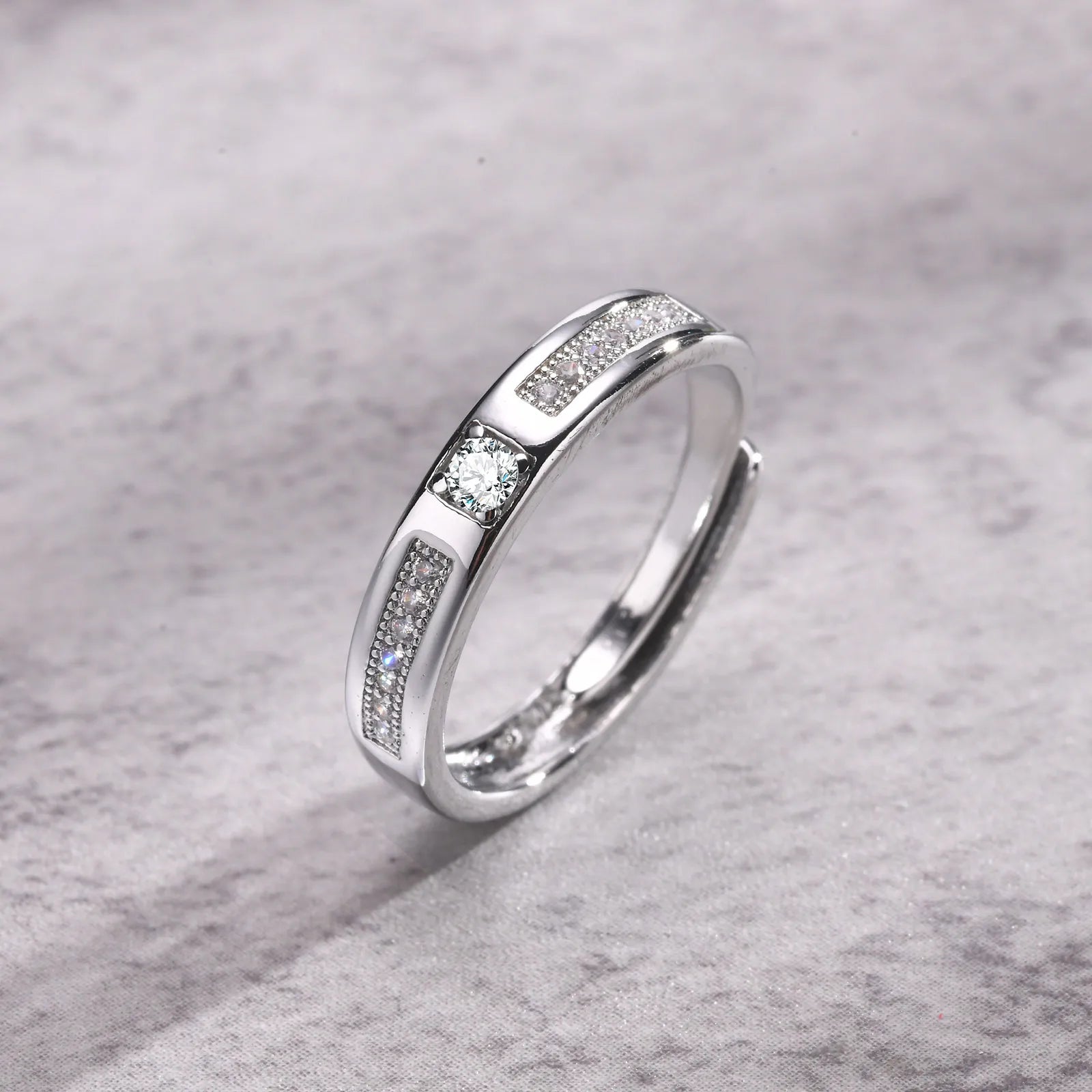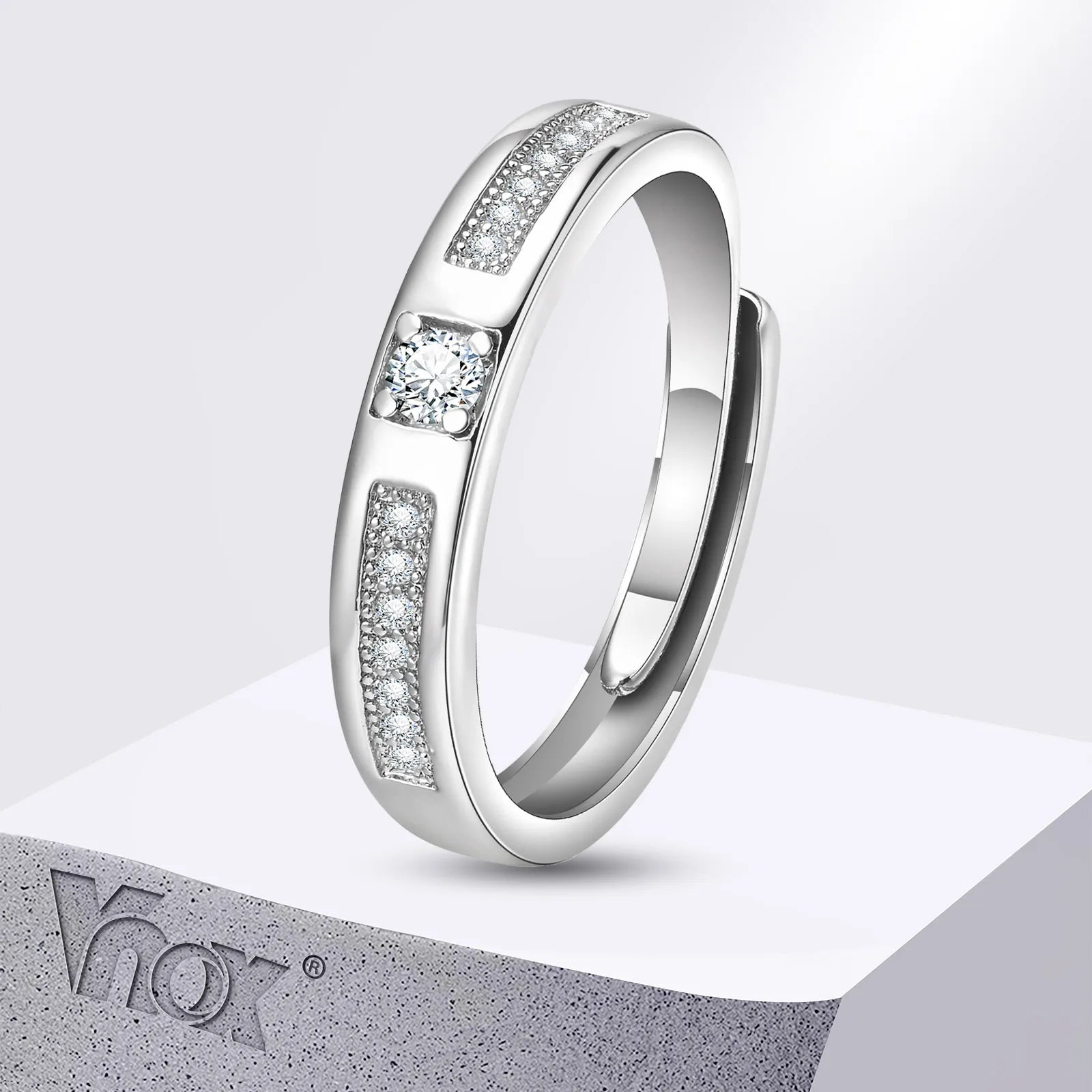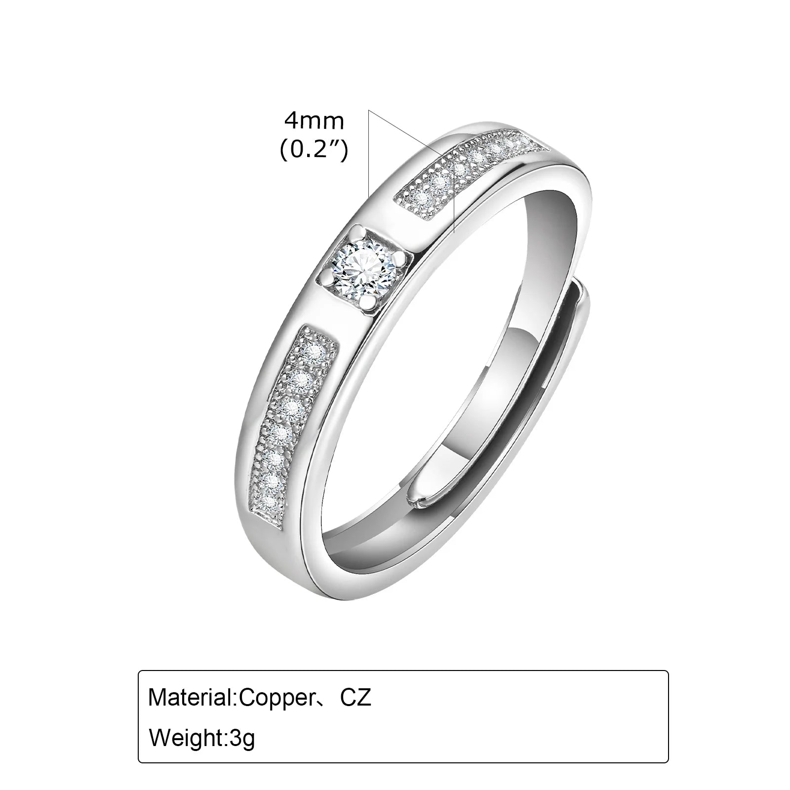 Vnox Adjustable 4mm Rings for Men Women, Sparking Cubic Zirconia Stones Finger Band, Engagement Ring Gift