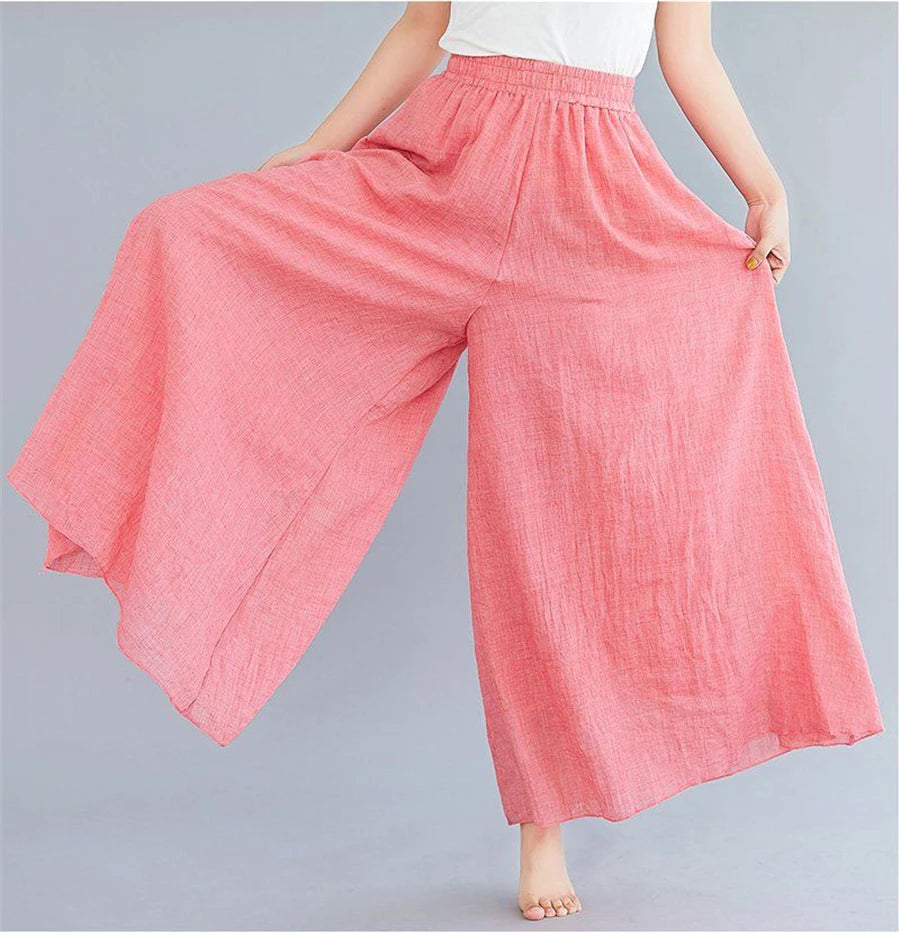 Baggy Cotton Linen Culotte Pants Women Casual Wide Leg Pantalones Summer Candy Color Sweatpants Ankle-length Straight Trousers