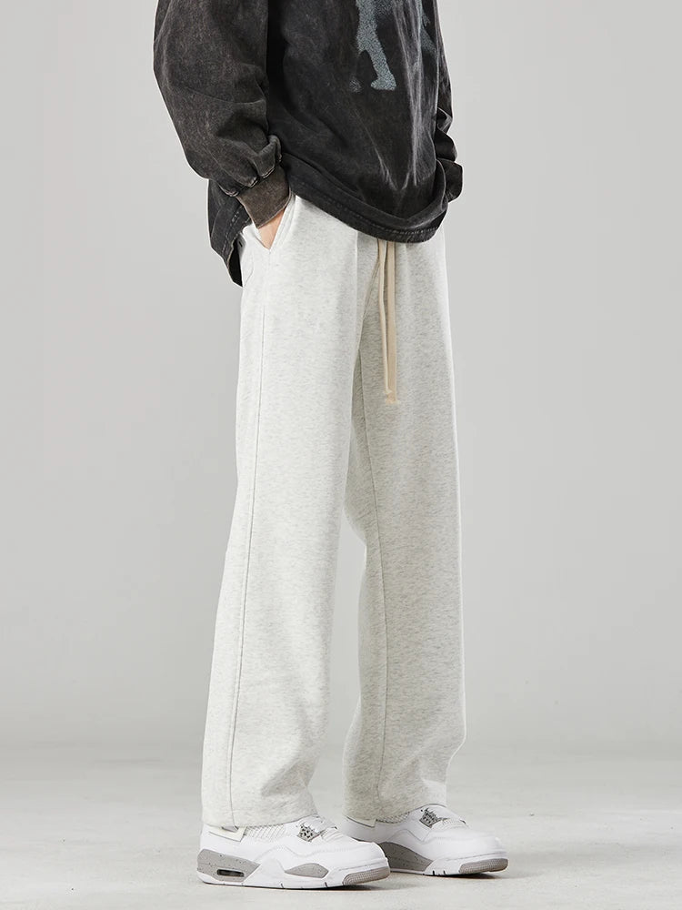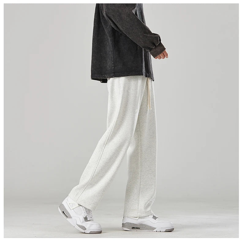 Baggy Men's Cotton Wide Leg Pants Fashion Elastic Waist Harajuku Youth Streetwear Four Seasons Straight Casual Trousers