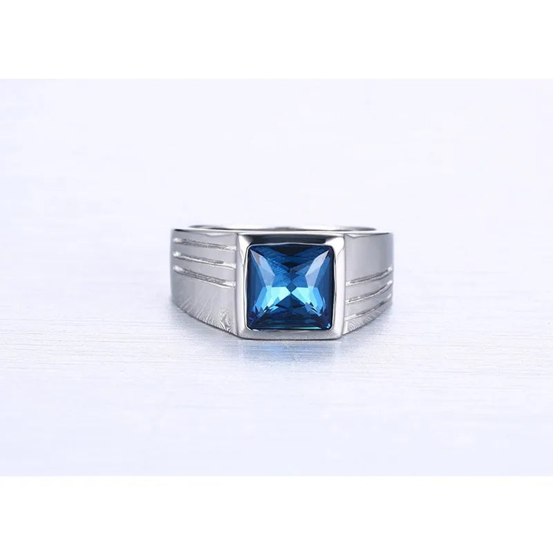 Vnox Blue CZ Zircon Engagement Band Ring for Men Silver Color Stainless Steel High Quality