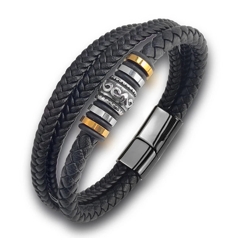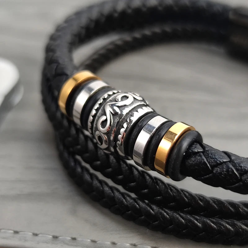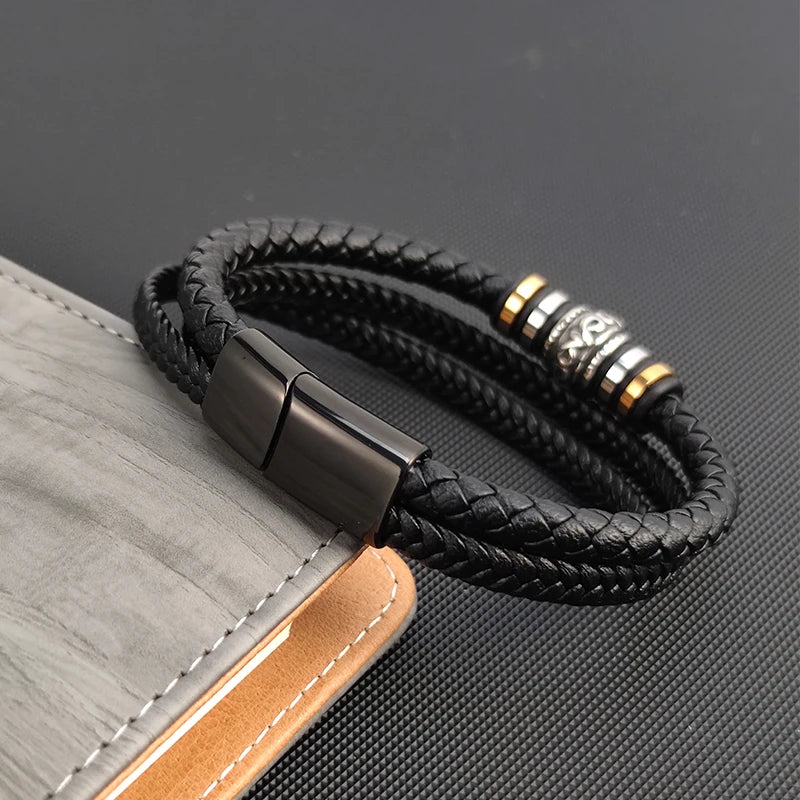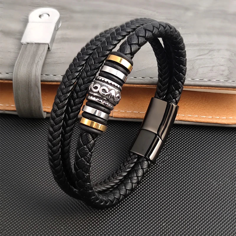 Boho Multi Layer Braided Rope Leather Bracelet Stainless Steel Men Bangle for Christmas New Year Charm Jewelry Gift