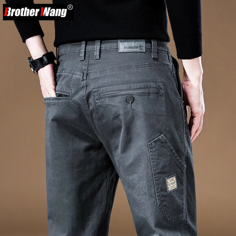 Brand Clothing 2024 New Men's Cargo Pants 97%Cotton Solid Color Work Wear Casual Pant Wide Korean Jogger Trousers Male