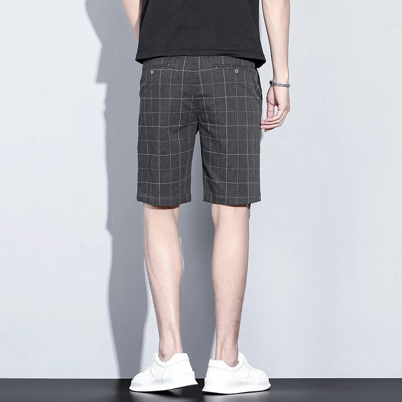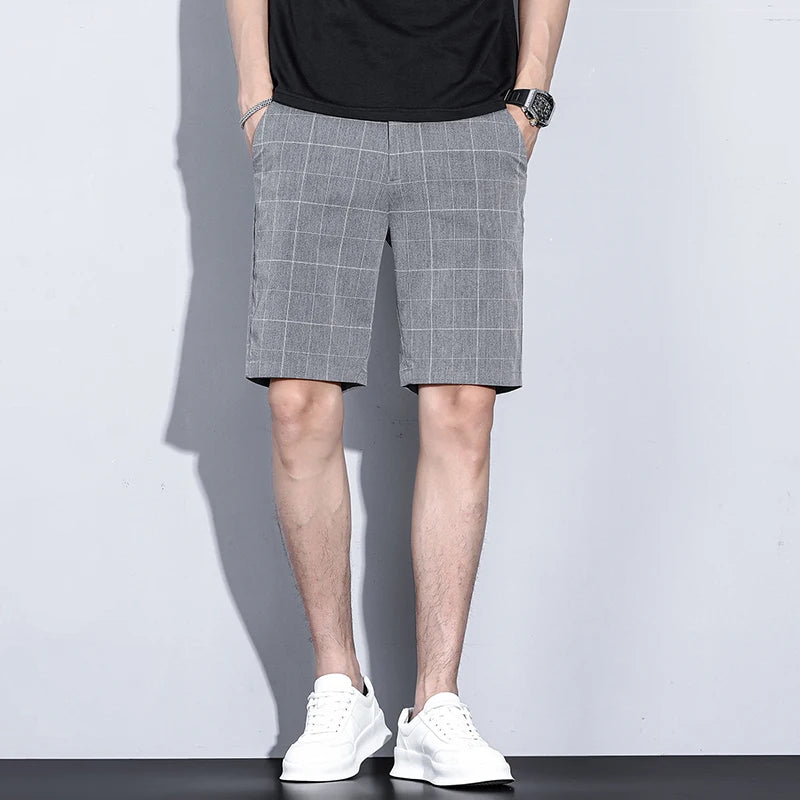 MINGYU Brand Clothing Plaid Stripe Shorts Men Summer Thin Business Knee Length Pants Straight Beach Korea Grey Short Pant Male