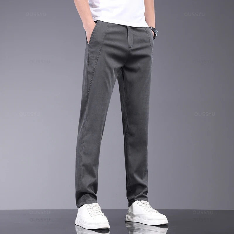 High Quality Brand Clothing New Summer Thin Lyocell Fabric Casual Pants Men Slim Elastic Waist Business Korea Grey Trousers Male