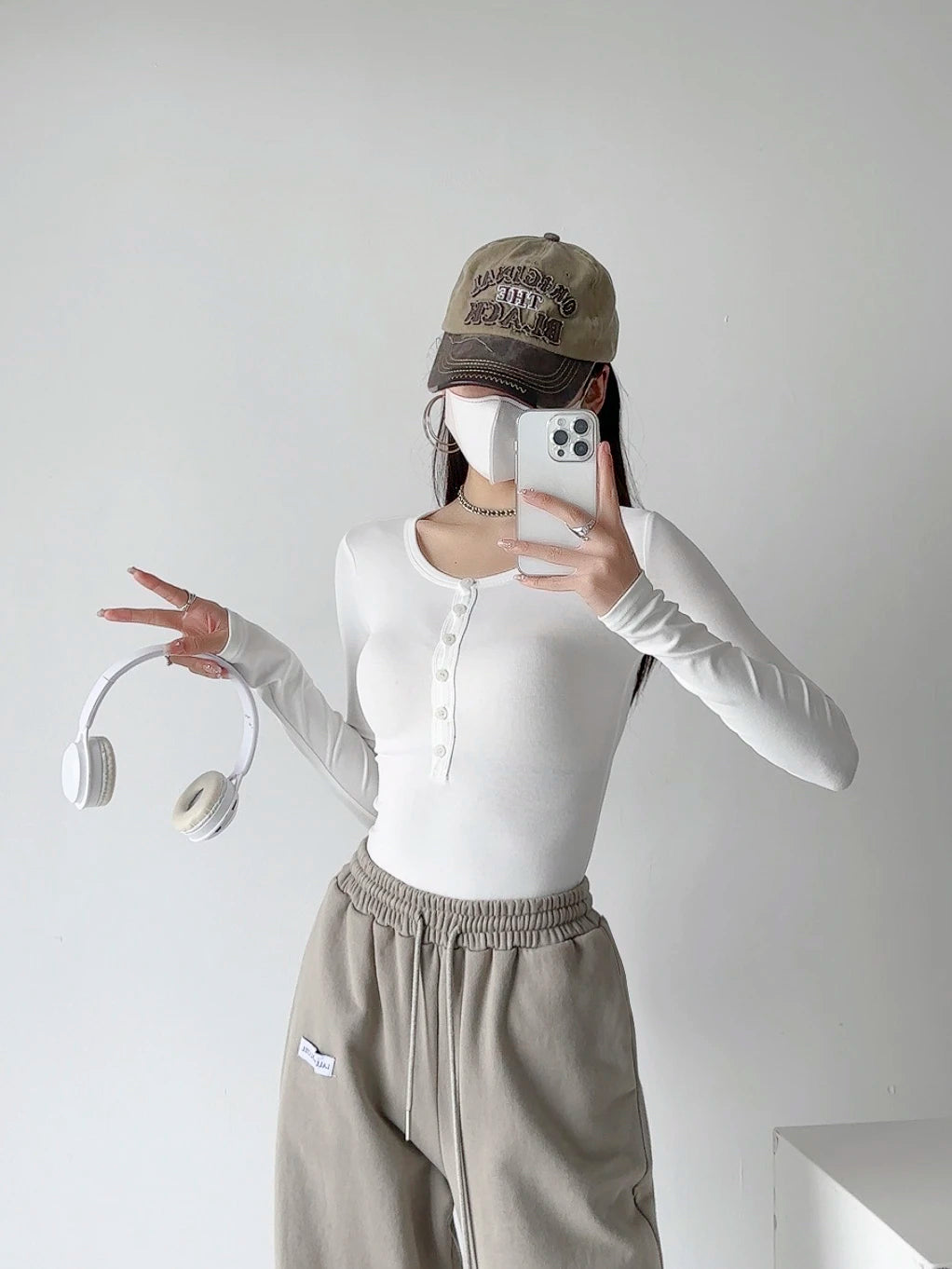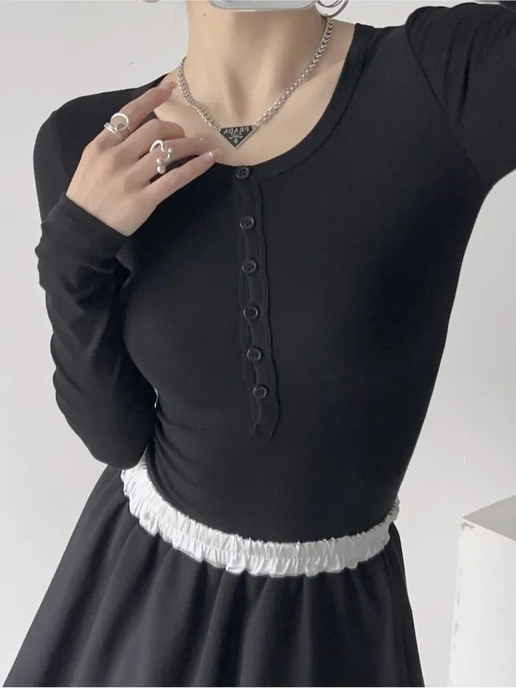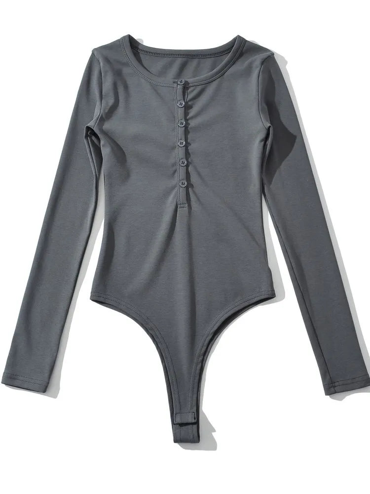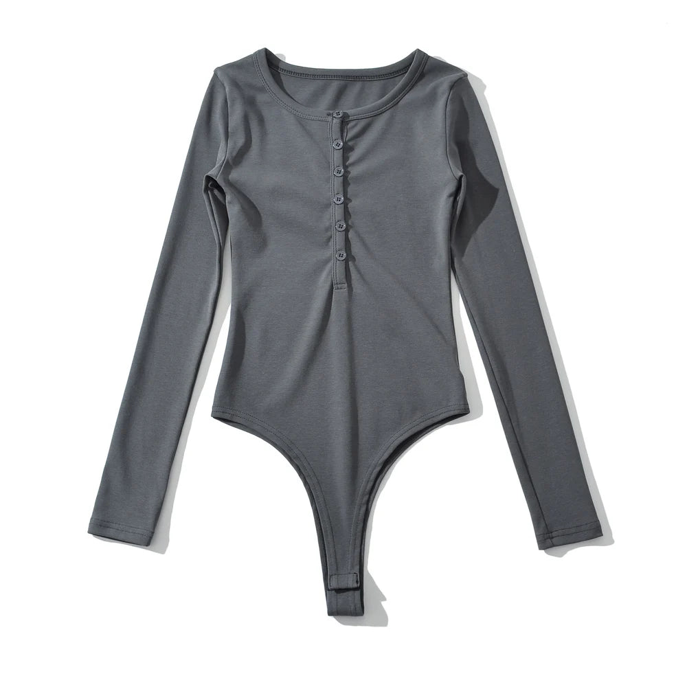 2023 Spring 90'S Sexy Open Buttons O neck Rib Long sleeve Bodysuit Woman Short Jumpsuit Slim fit Rompers Bodycon Playsuits