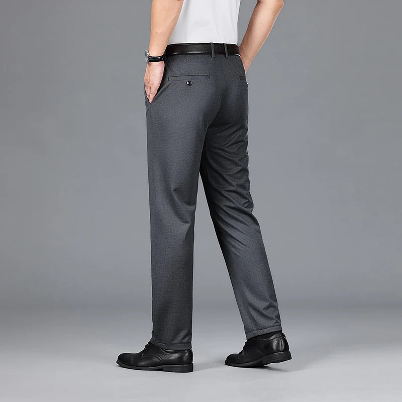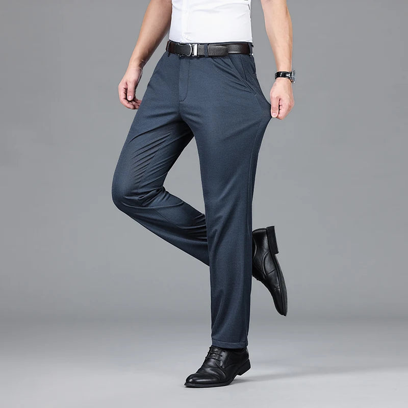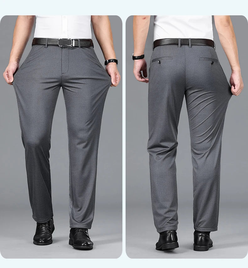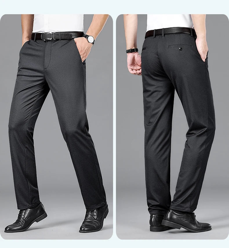 2024 New Lyocell Men's Elastic Casual Pants Classic Loose Straight Business Suit Trousers Brand Clothes Black Blue Gray
