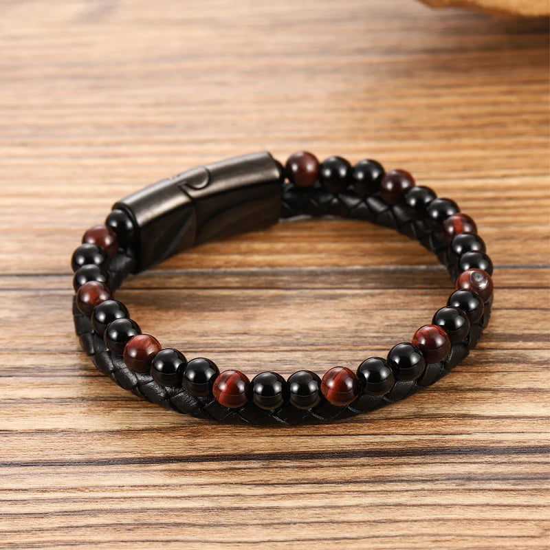 Charm Men Bracelet Rope Stainless Steel Magnetic Natural Stone Leather Beaded Braclet Volcanic Stone bracelet bangles Chain Gift