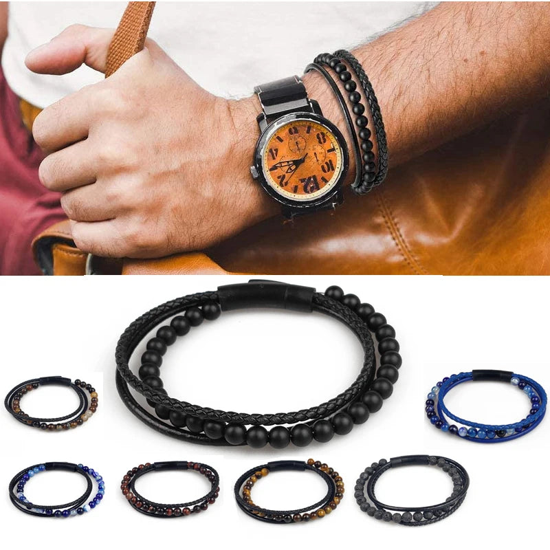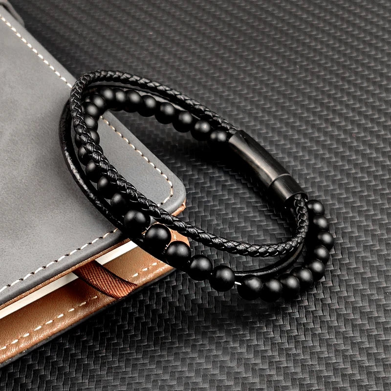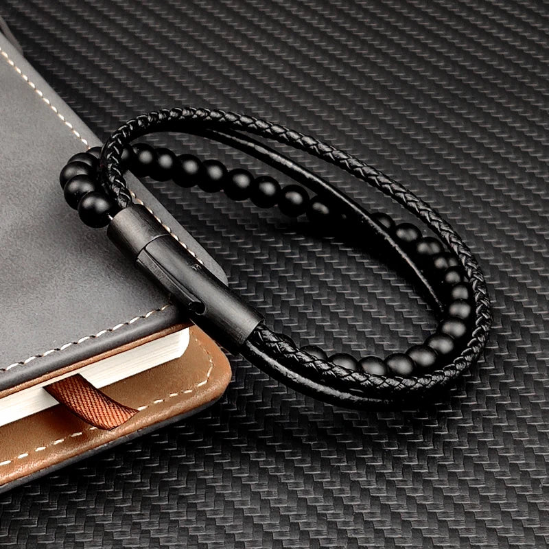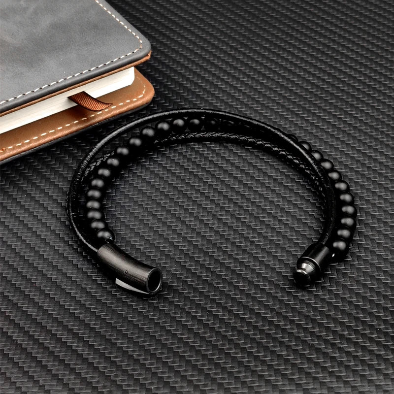 Charm Simple Men Free Custom Name Bangle Bracelet Multi-woven Stainless Steel Beaded Black Bracelet Classic Gift Jewelry
