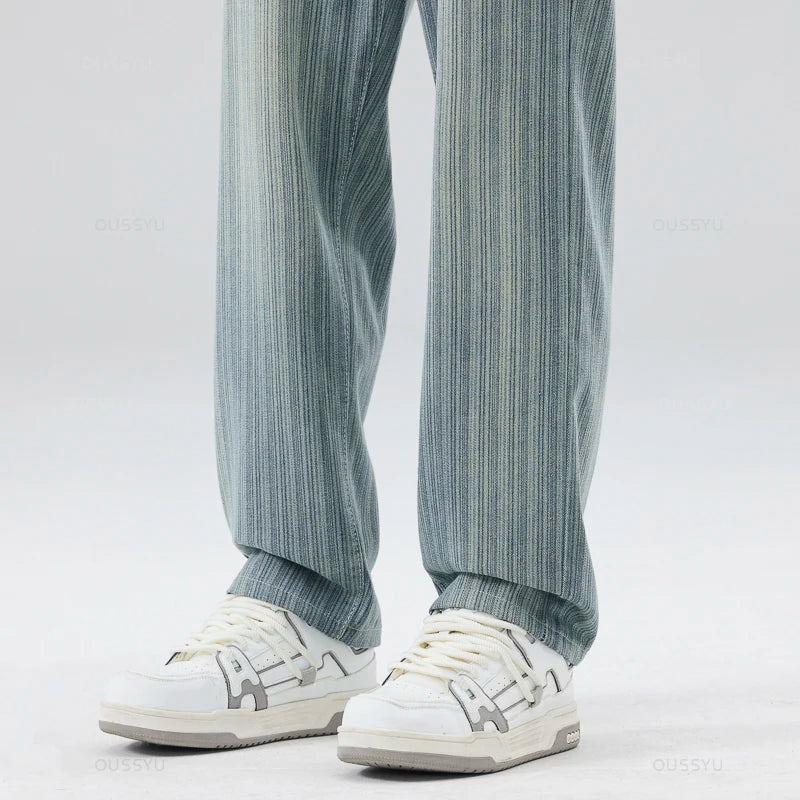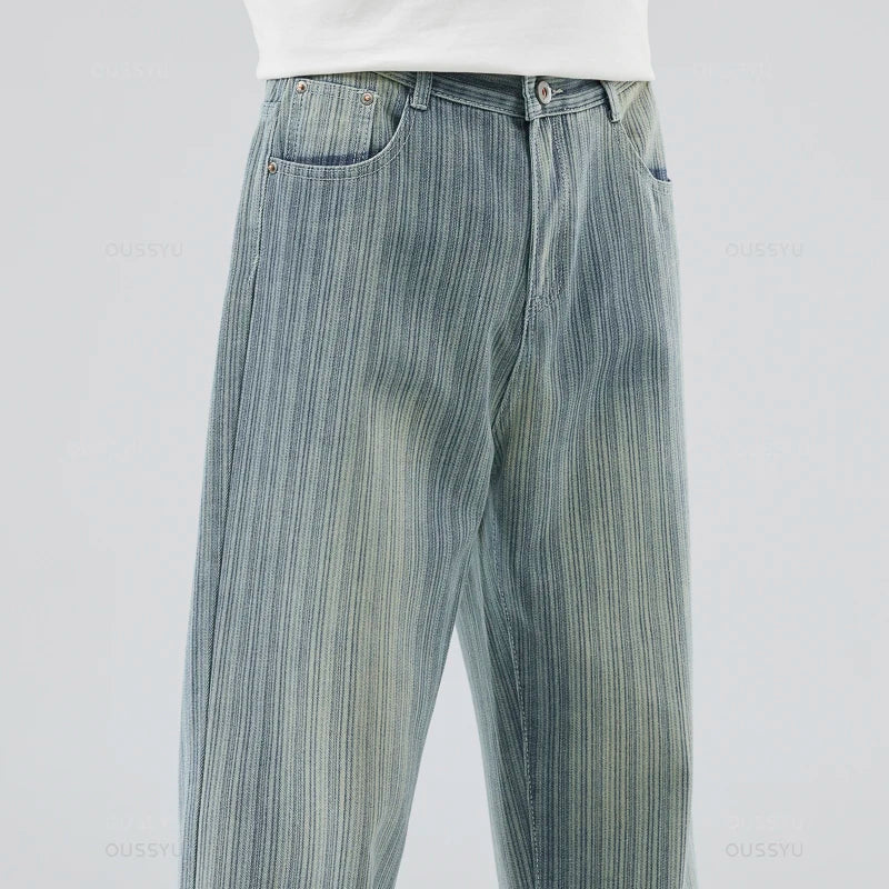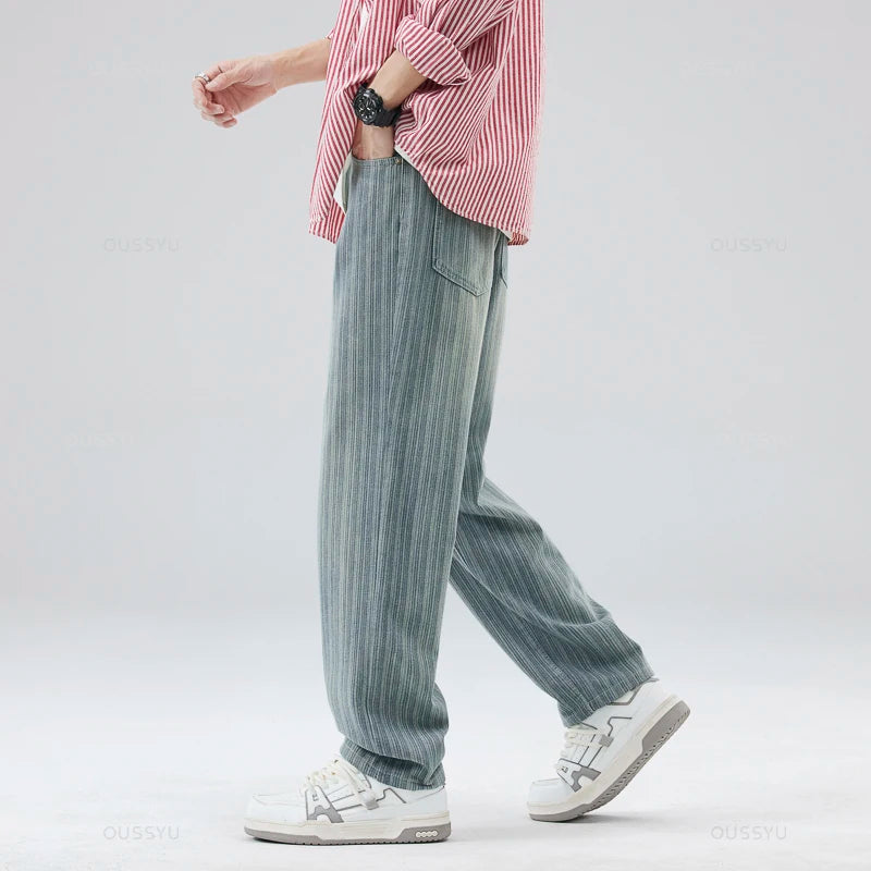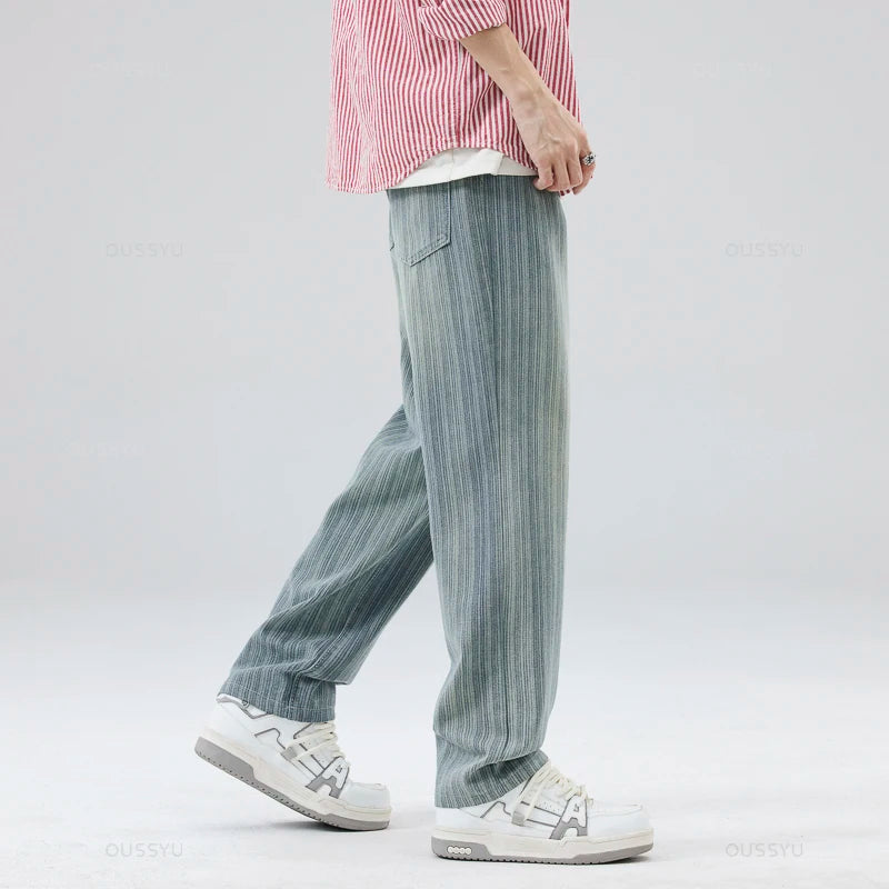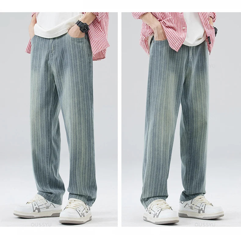 New Design High Quality Cotton Classic Retro Stripes Men's Jeans Baggy Straight Denim Pants Striped Trouser for Men Streetwear
