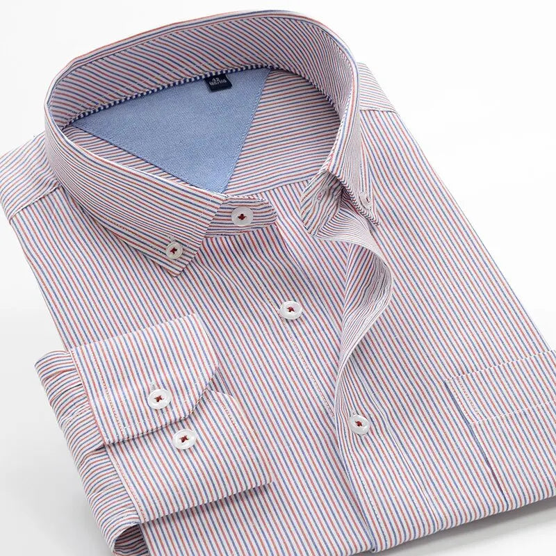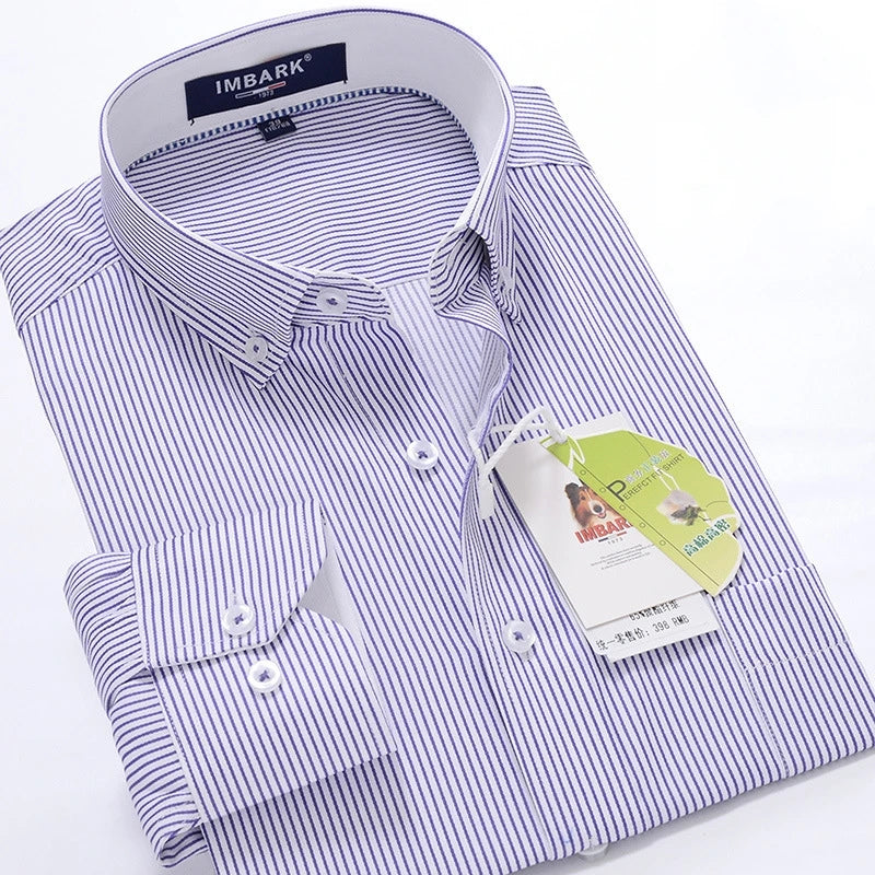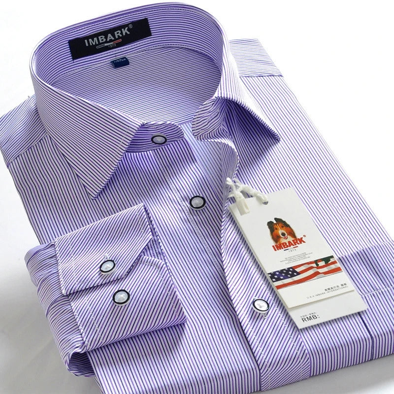 SHAN BAO classic striped men's business casual long-sleeved shirt brand clothing gentleman elegant wedding party loose shirt