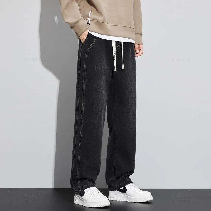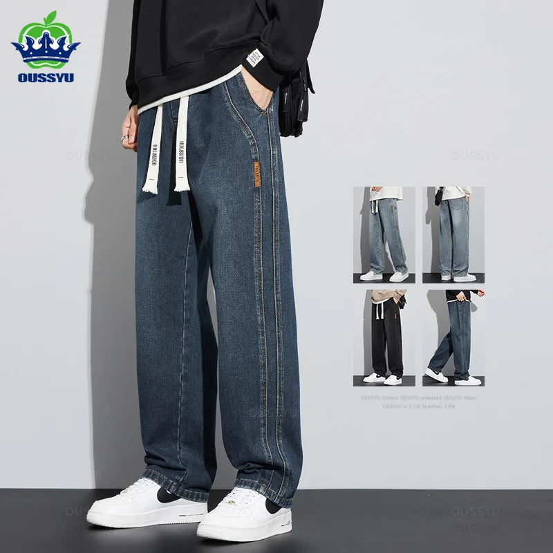 OUSSYU Brand Clothing New Design Cotton Jeans Men Baggy Elastic Waist Cargo Denim Pants Work Wide Leg Korean Trousers Male 4XL