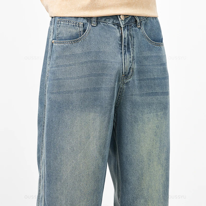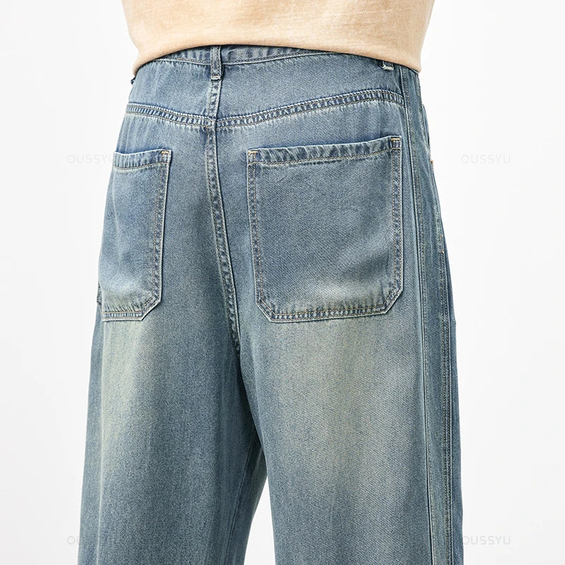 Brand Clothing Spring Summer Cosy Soft Lyocell Fabric Men's Jeans Loose Wide Leg Pants Elastic Waist Casual Trousers Plus Size