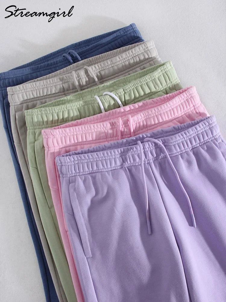 Cotton Sweatpants Women Straight Leg High Waist Streetwear Purple Jogger Pants Women Loose Trousers Womens Casual Sweatpants