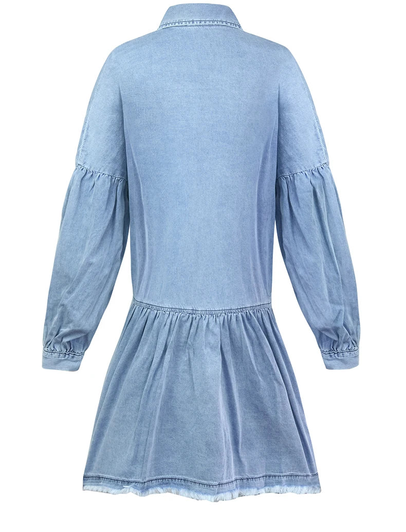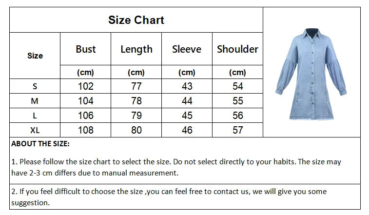 Denim Shirt Dress Women Turn-Down Collar Long Sleeve Dresses Female Fashion Single Breasted Casual Loose Dress With Pockets