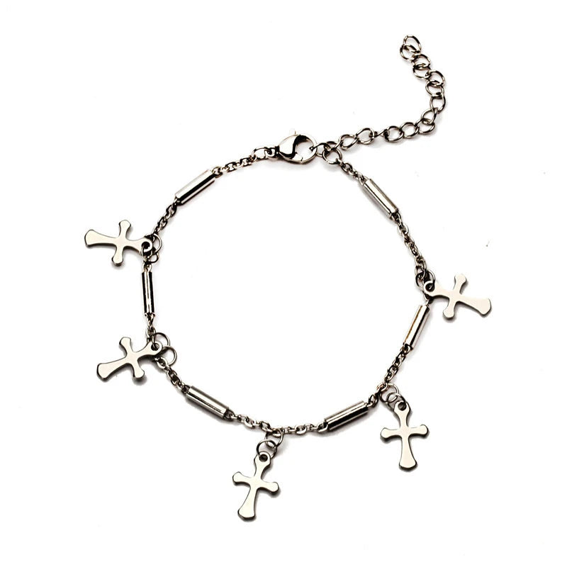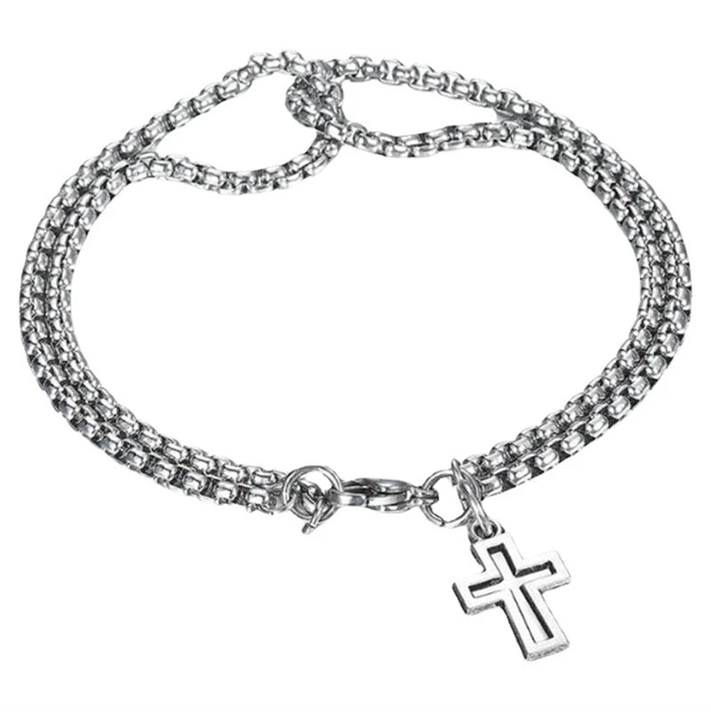 Double Chain Hollow Cross Pendant Stainless Steel Lobster Claw Claw Bracelet Fashion Hip Hop Punk Party Men's Jewelry Gift