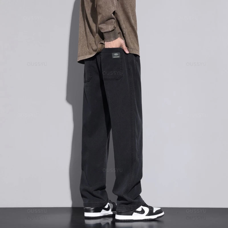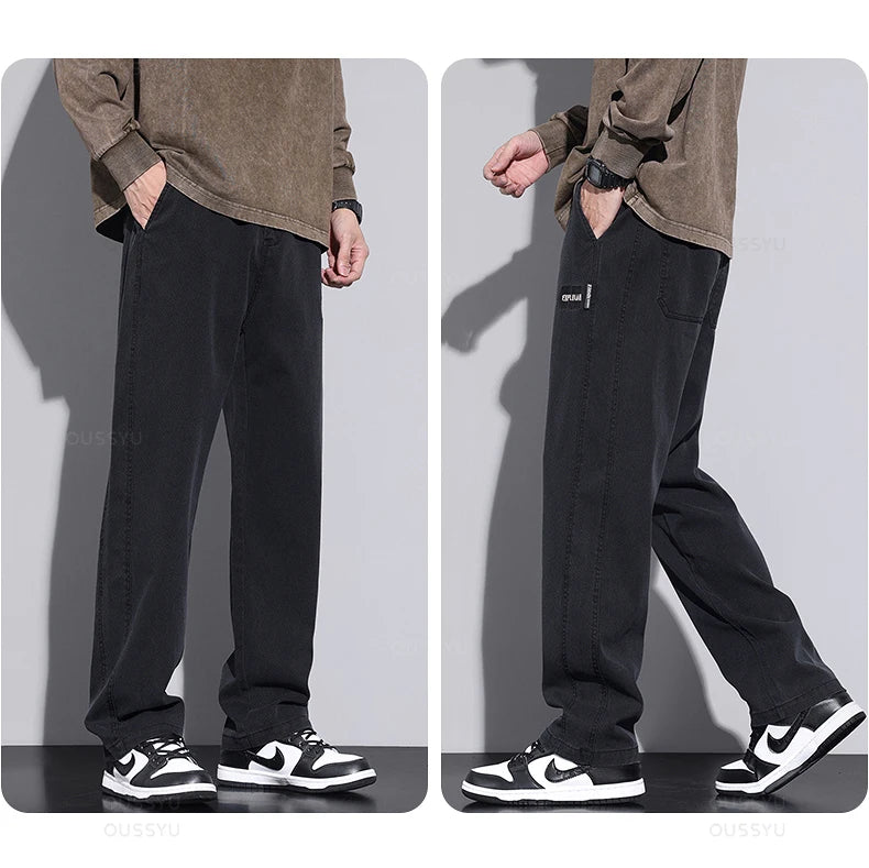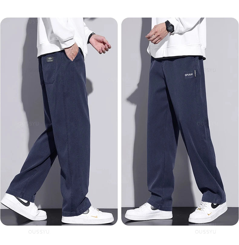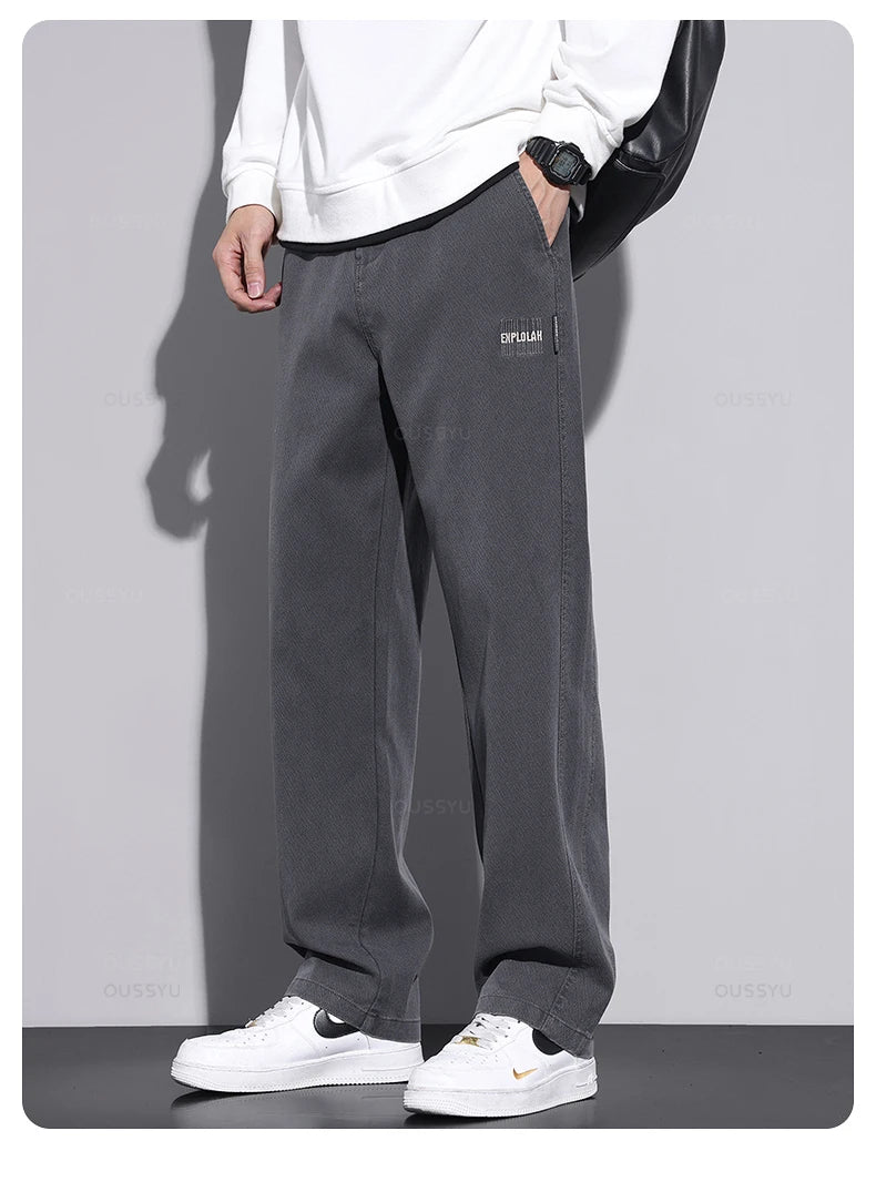 High Quality Soft Lyocell Fabric Pants Men Elastic Waist Baggy Straight Autumn Winter Thick Casual Wide Trousers Male Plus Size
