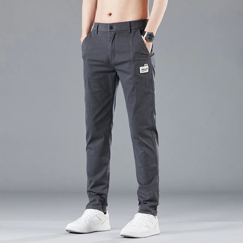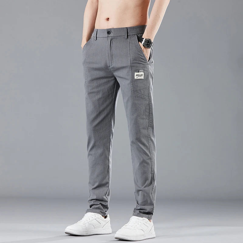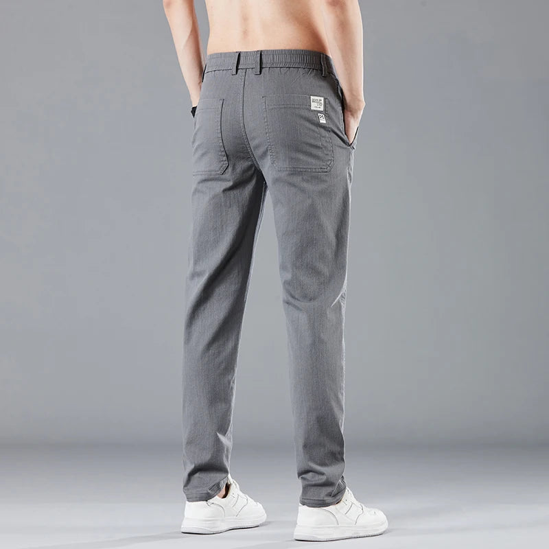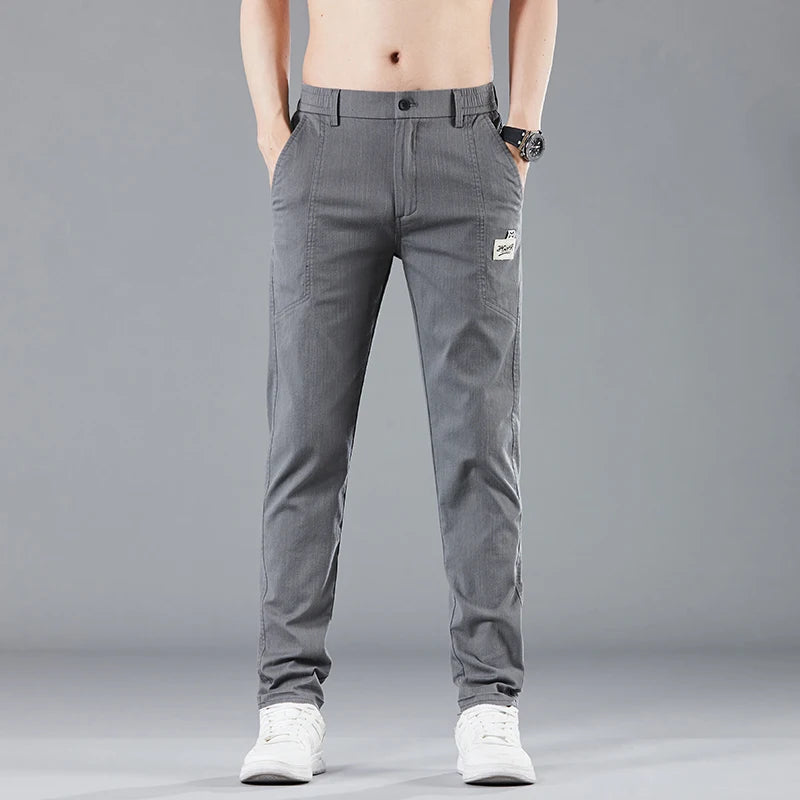 Spring Summer Elastic Waist Design Men's Thin Casual Pants Korean Fashion Cotton Stretch Business Trousers Male Grey Blue