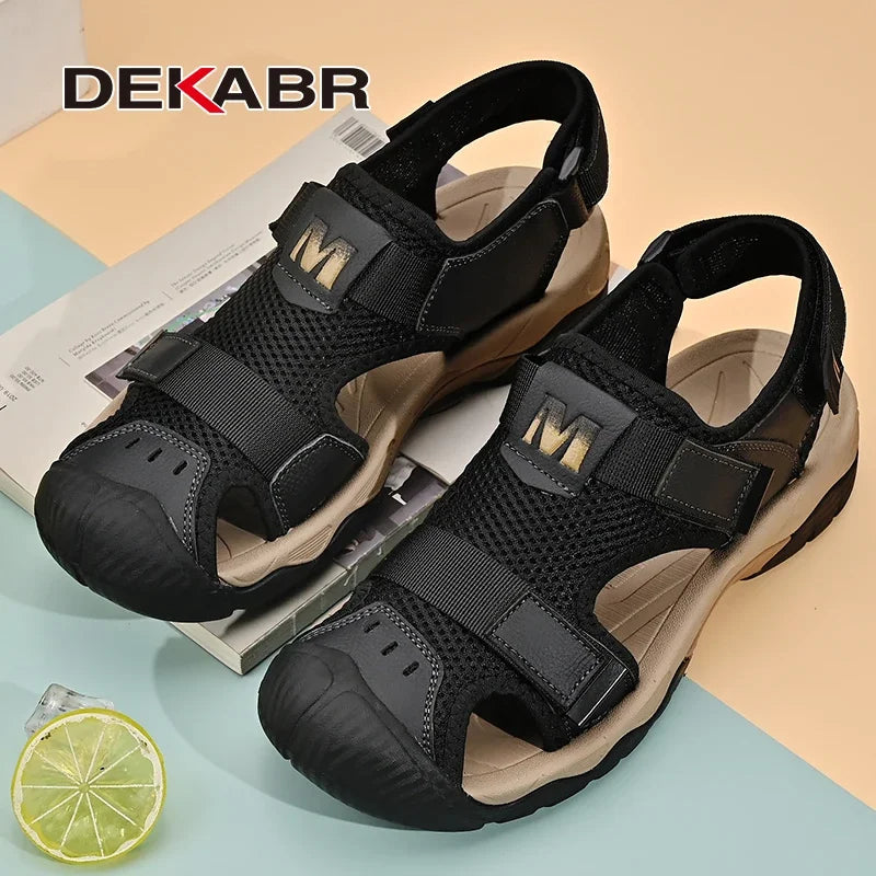 DEKABR Fashion Casual Men Shoes Genuine Leather Mesh Lining Summer Beach Man Sandals Breathable Anti-skid MD Sole Size 38-46