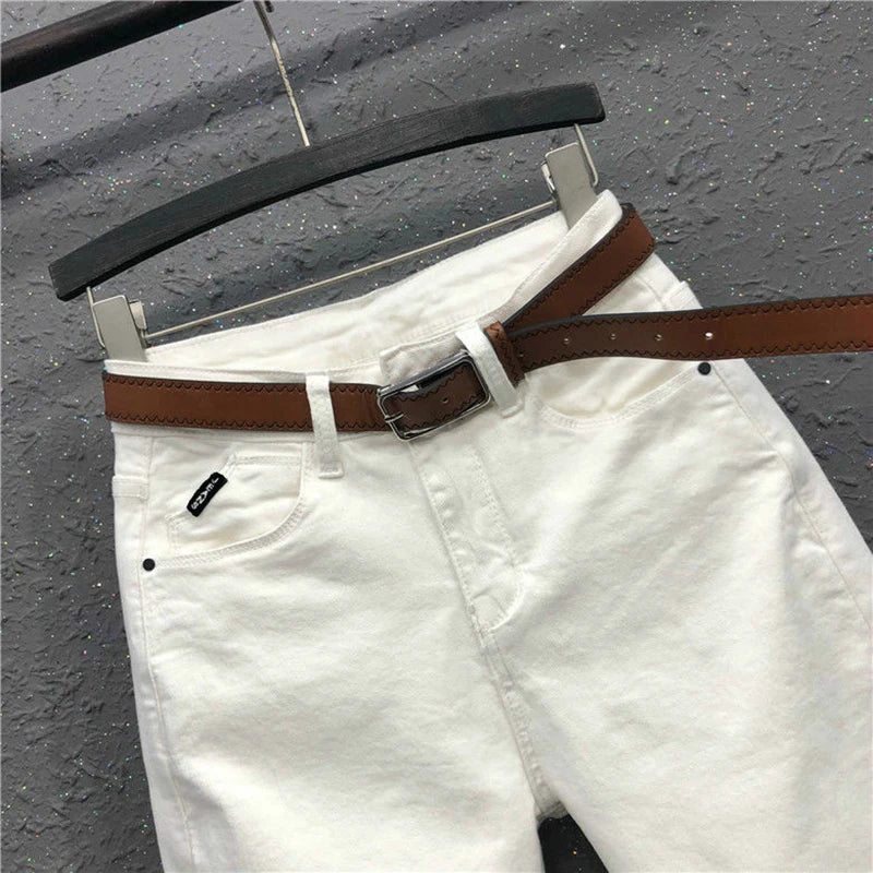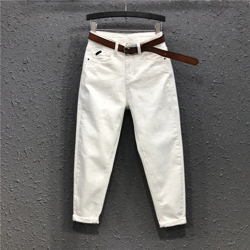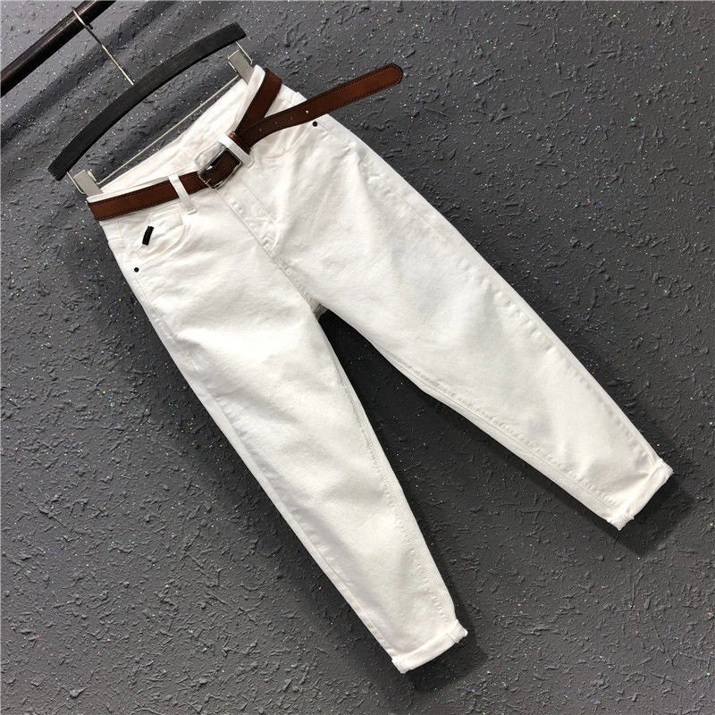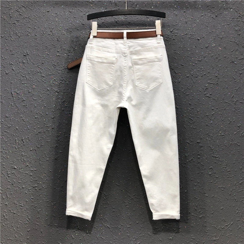 2022 Spring New Fashion Women High Waist Loose White Jeans All-matched Casual Elastic Denim Cotton Harem Pants S963