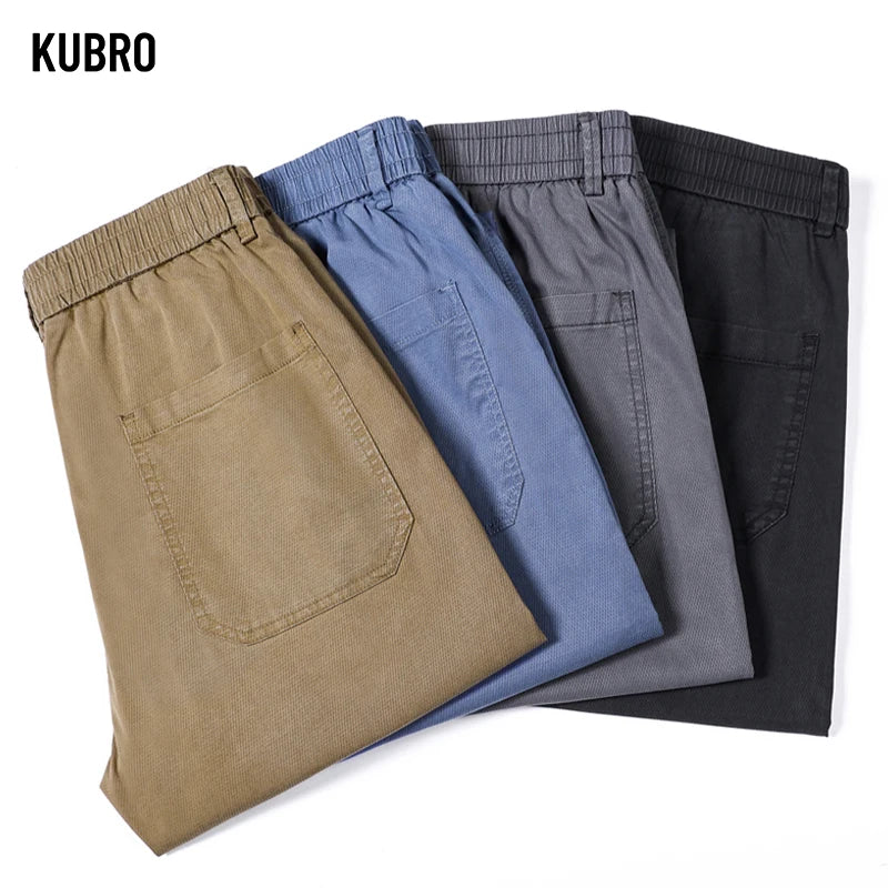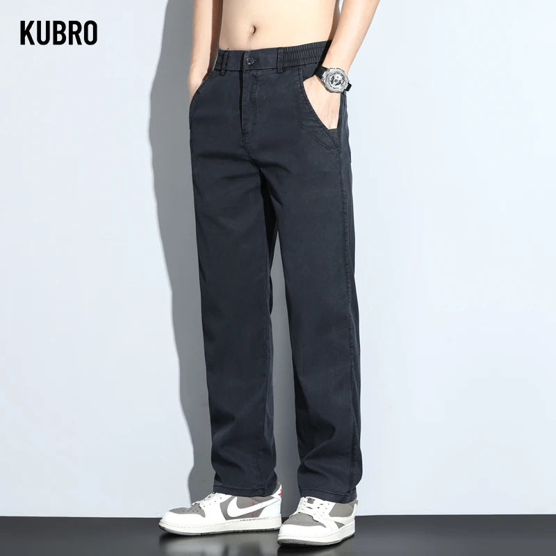 KURBO Korean Fashion Men's Lyocell Ice Silk Jeans Summer Thin Office Business Casual Elastic Waist Loose Straight Wide Leg Pants