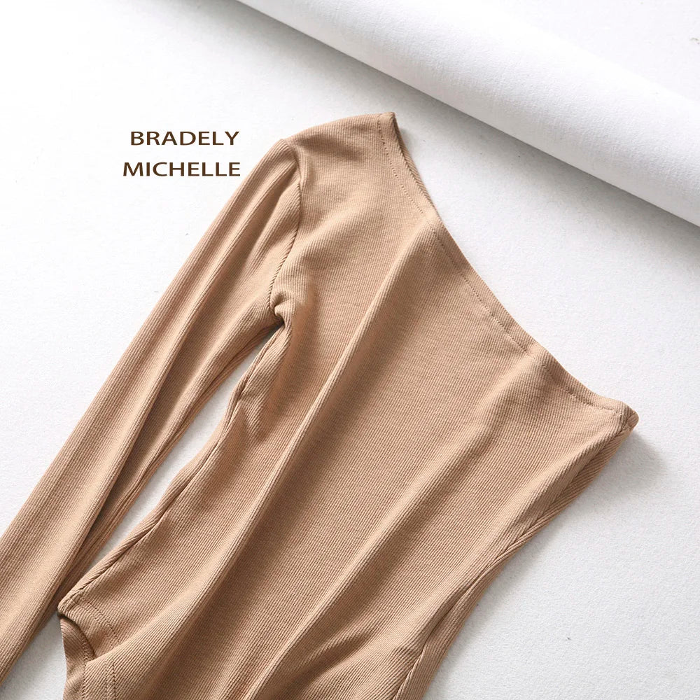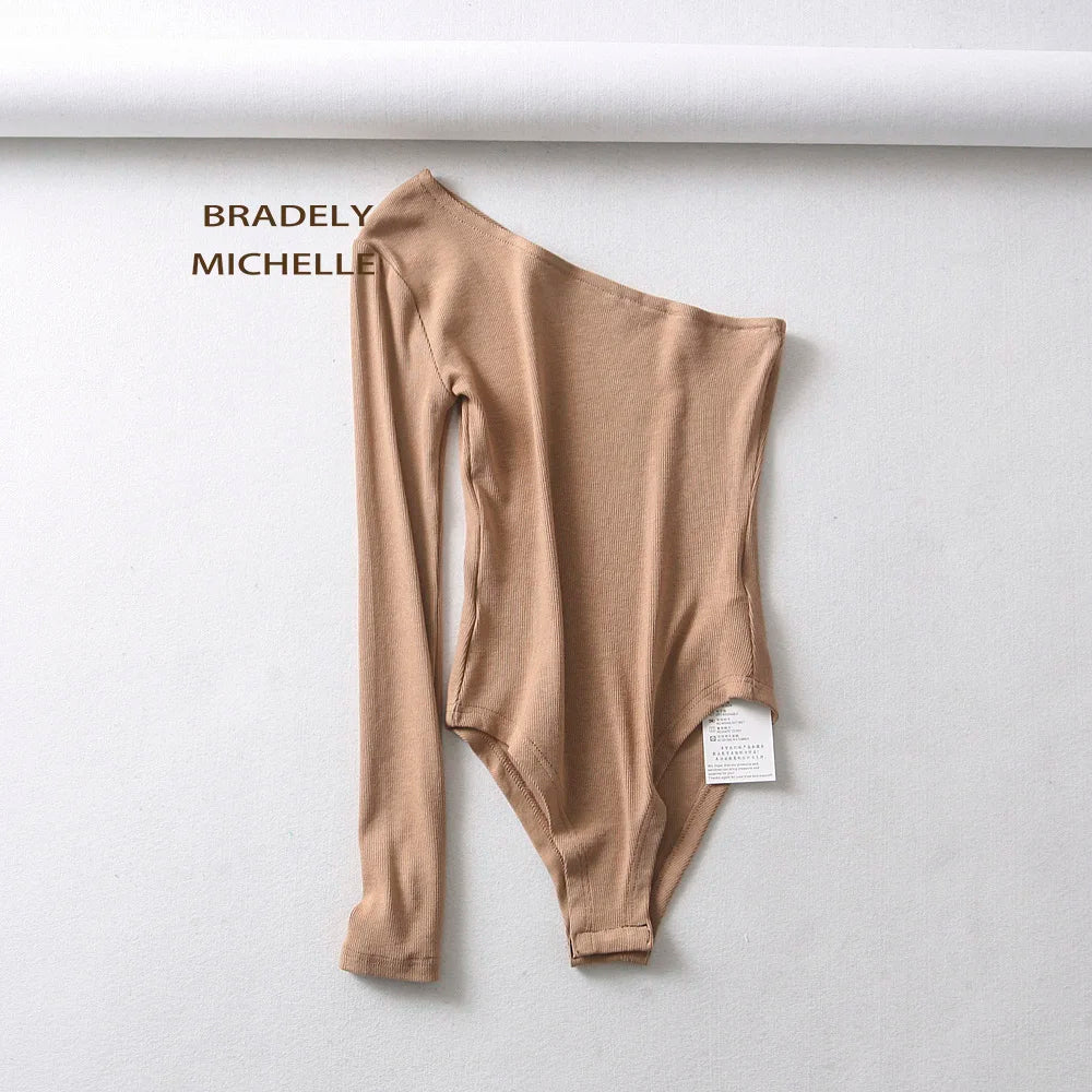 BRADELY MICHELLE New Fashion Women Sexy Strapless Single Sleeve Bodysuit Autumn Ladies Under Tops Cotton Jumpsuit Rompers