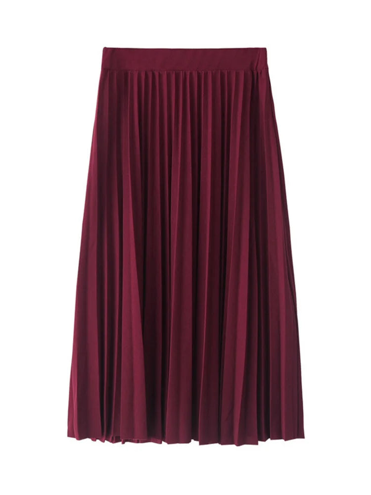 Spring and Autumn New Fashion Women's High Waist Pleated Solid Color Half Length Elastic Skirt Promotions Lady Black Pink