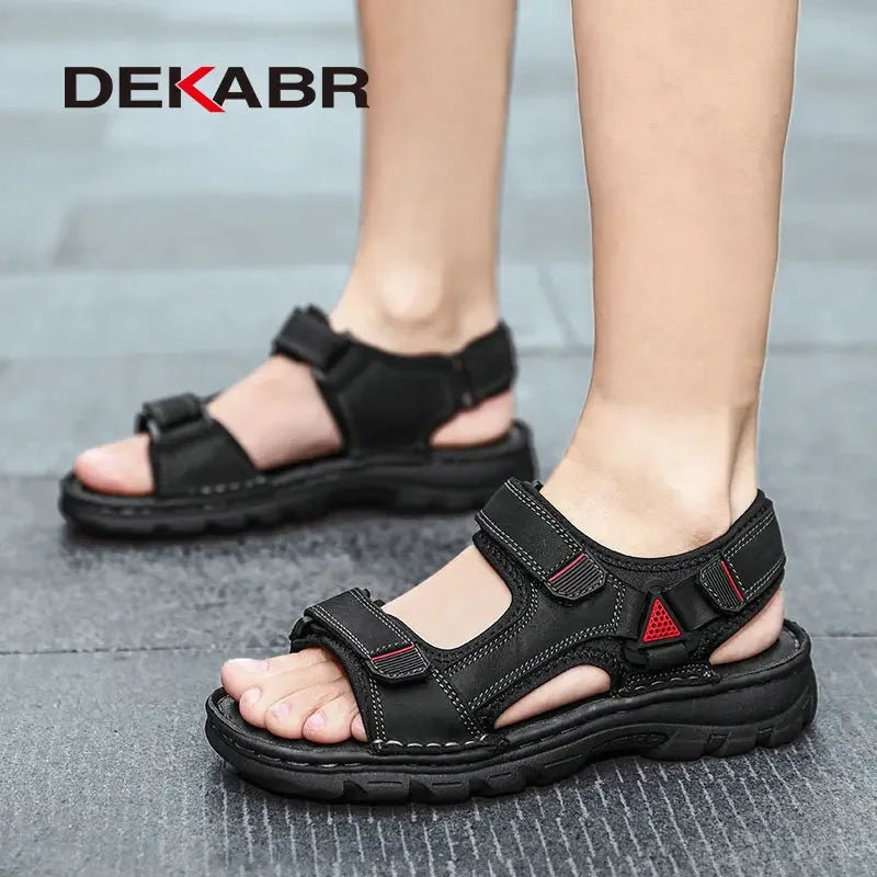 DEKABR Size 48 Male Genuine Leather Sandals Summer Casual Men Shoes Vacation Beach Shoes Fashion Outdoor Non-Slip Sneakers