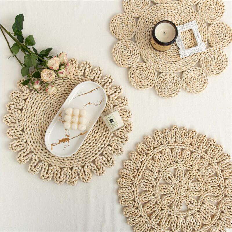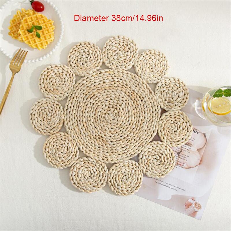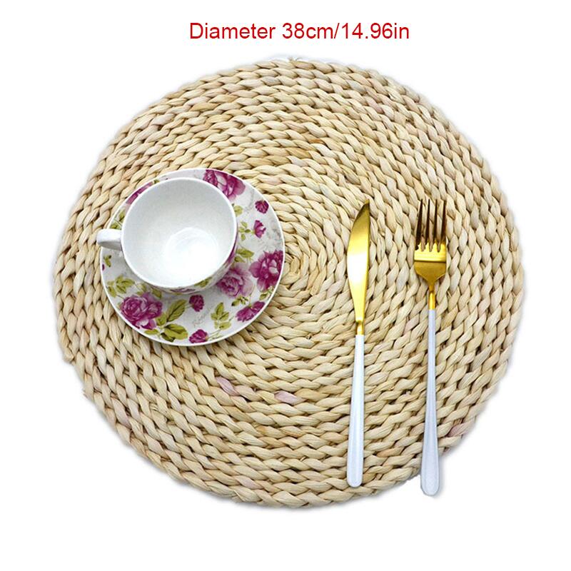 This handmade placemat has been meticulously crafted from corn husk and is highly durable. Its wipeable surface makes it easy to clean, making it perfect for everyday use. The round shape provides an elegant aesthetic, giving any table setup a touch of sophistication.