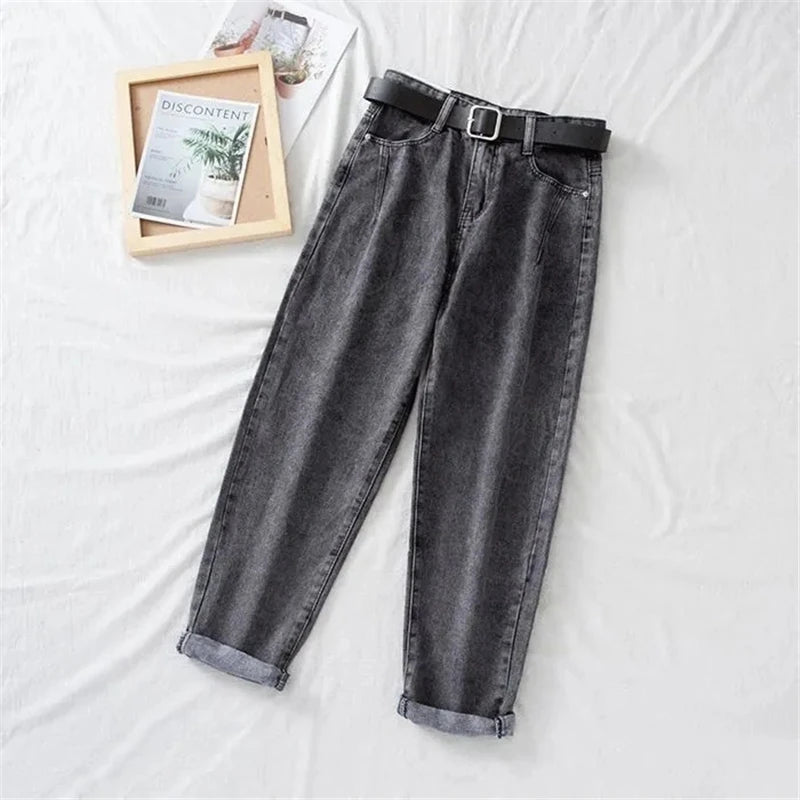 New High Waist Jeans Women Harem Pants Loose Casual Korean Mom Jeans Vintage Female Denim Trousers Plus Size Pantalon With Belt