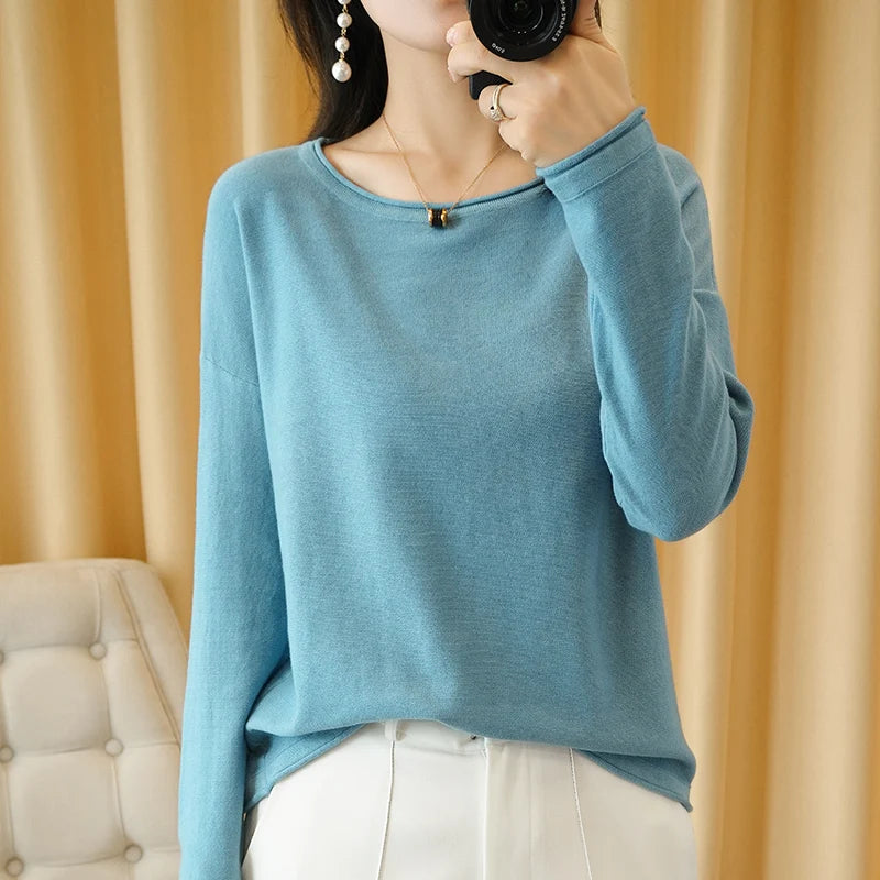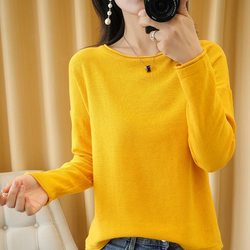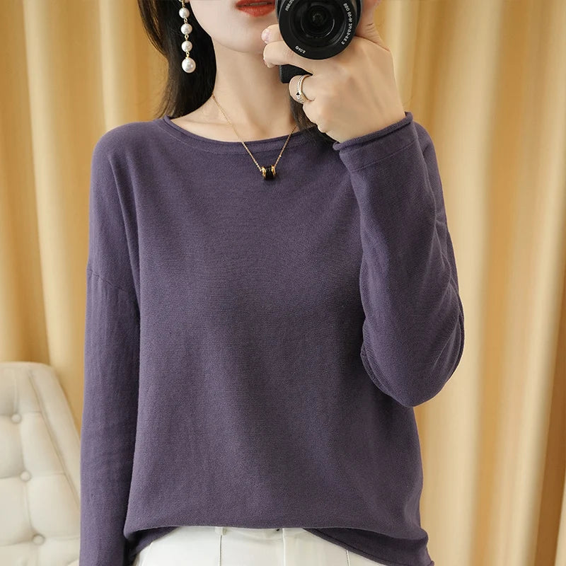 100% Cotton Women Knit Sweater Crimped Edge O-Neck Pullover Bottoming Pure Cotton Sweater Spring Autumn New Tops Clothes