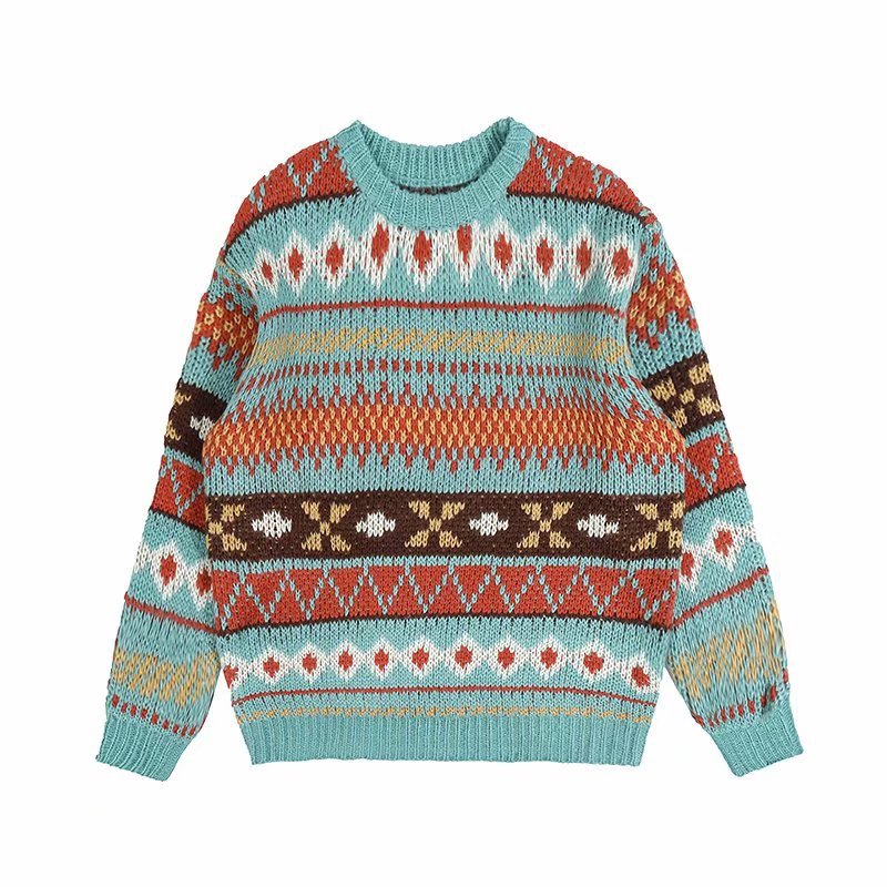 Knitted Vintage Graphic Sweater with Pattern Brown Blue Pullovers Sweaters and Jumpers Korean Streetwear