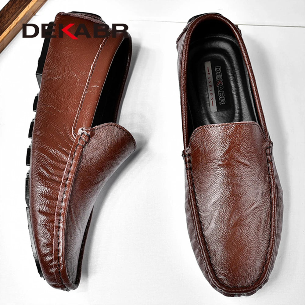 DEKABR Men High Quality Leather Loafers Men Casual Shoes Moccasins Slip On Flats Fashion Men Shoes Male Driving Shoes Size 38-47
