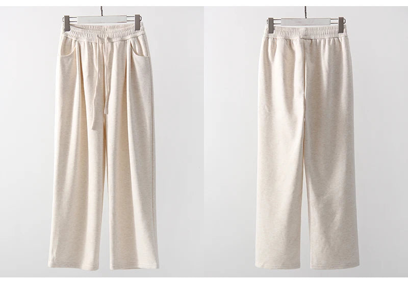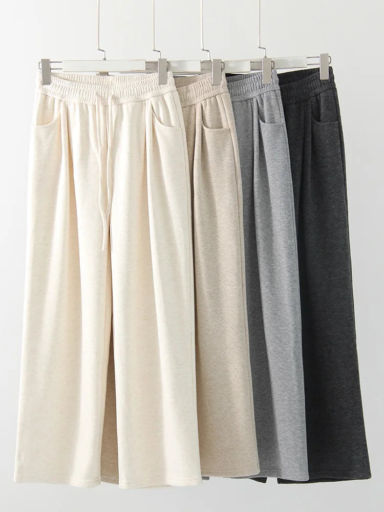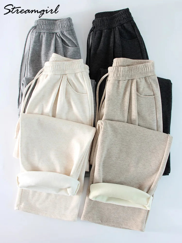 Loose Fleece Pants Women Winter Wide Leg Thick Velvet Casual Trousers Warm Women's Velvet Pants For Women Winter 2024 Beige