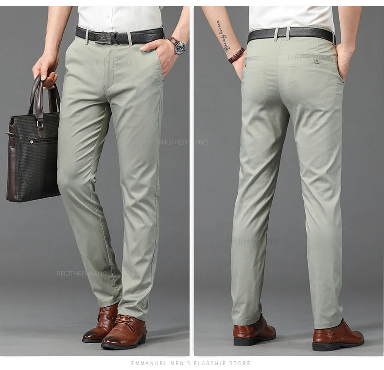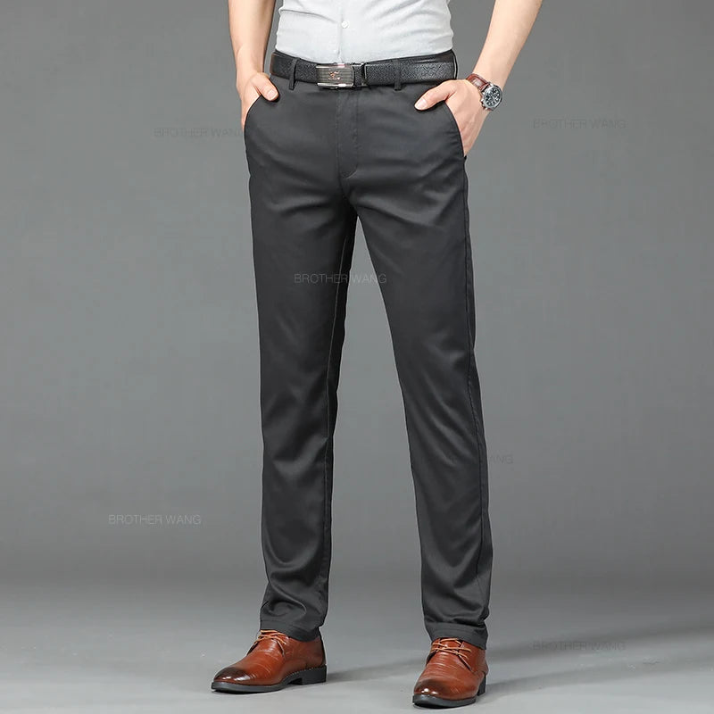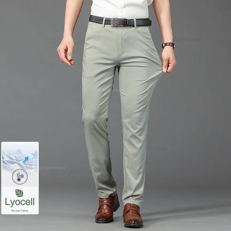 Lyocell Modal Fabric Men Casual Pants Summer Ultra-thin Soft Drapes Stretch Business Straight Solid Color Trousers Brand Clothes