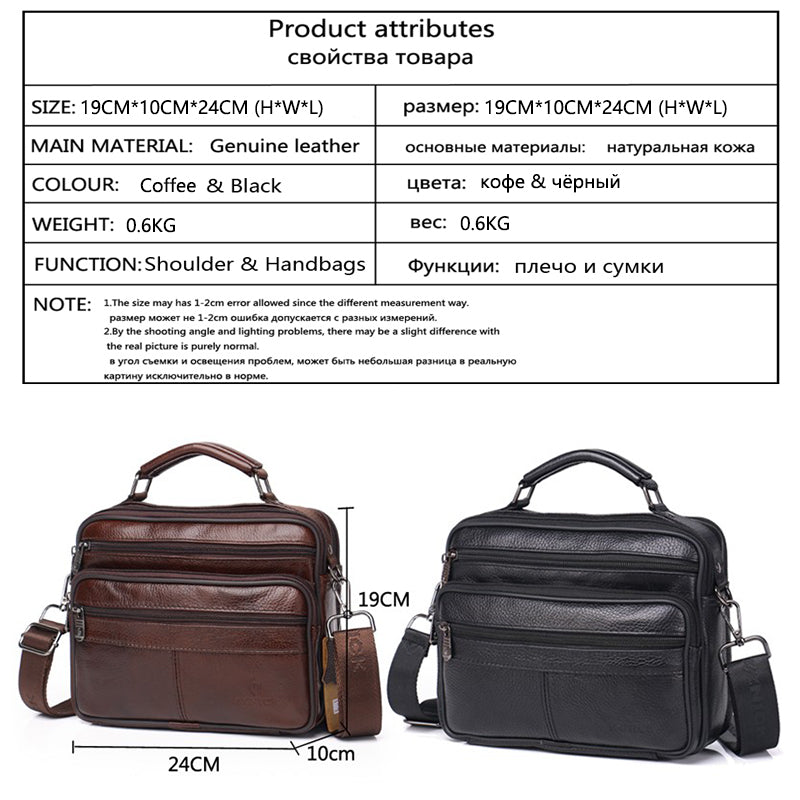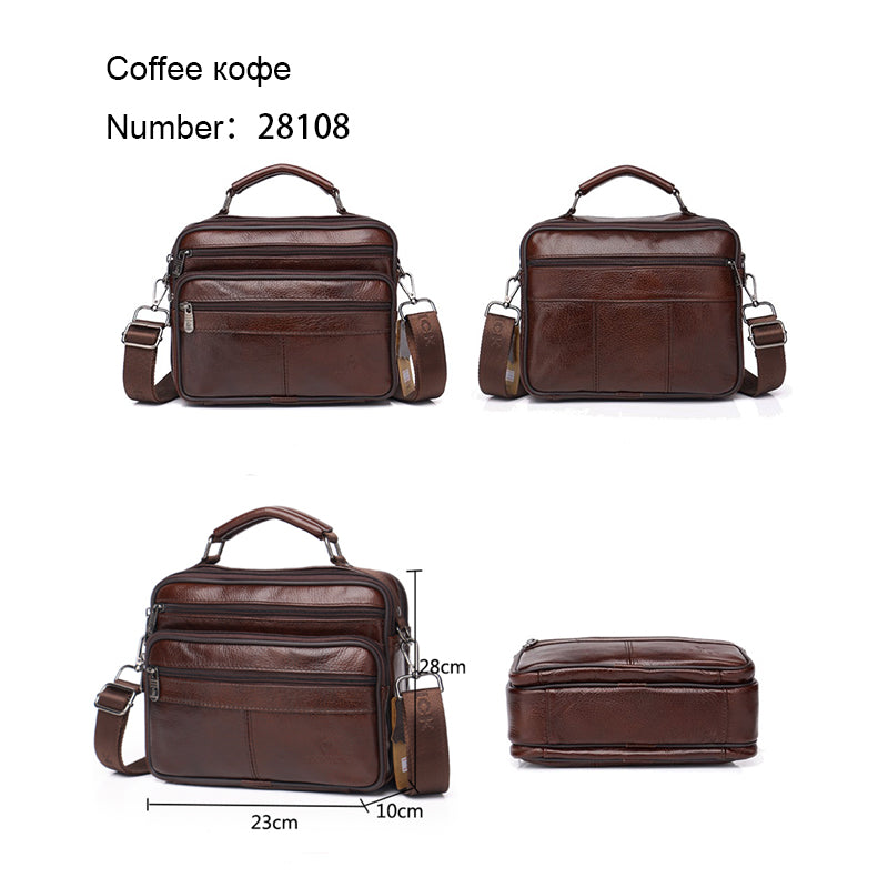 Men Genuine Leather Shoulder Bag Fashion Zipper Shoulder Messenger