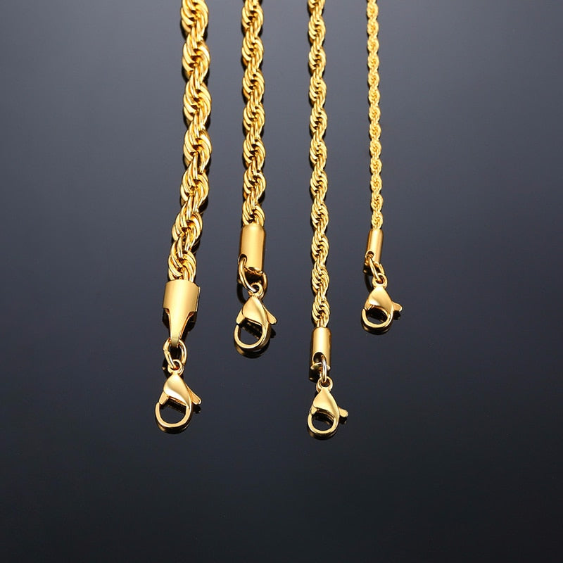 Men Ropes Long Necklace Stainless Steel Minimalist Twist Rope Chain Necklace