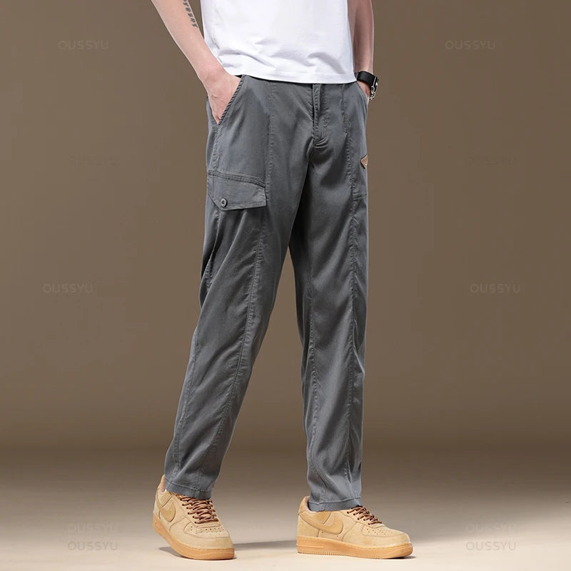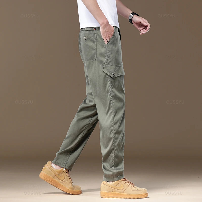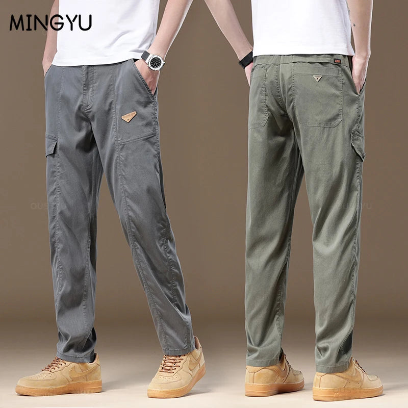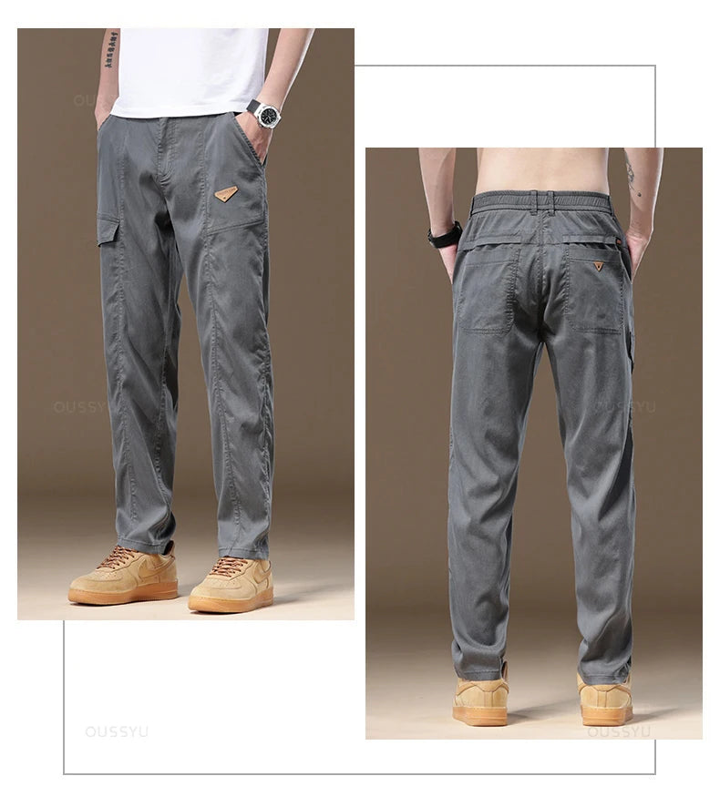 Brand Clothing Summer Soft Lyocell Fabric Men's Cargo Pants Thin Work Wear Elastic Waist Korean Outdoors Jogger Casual Trousers