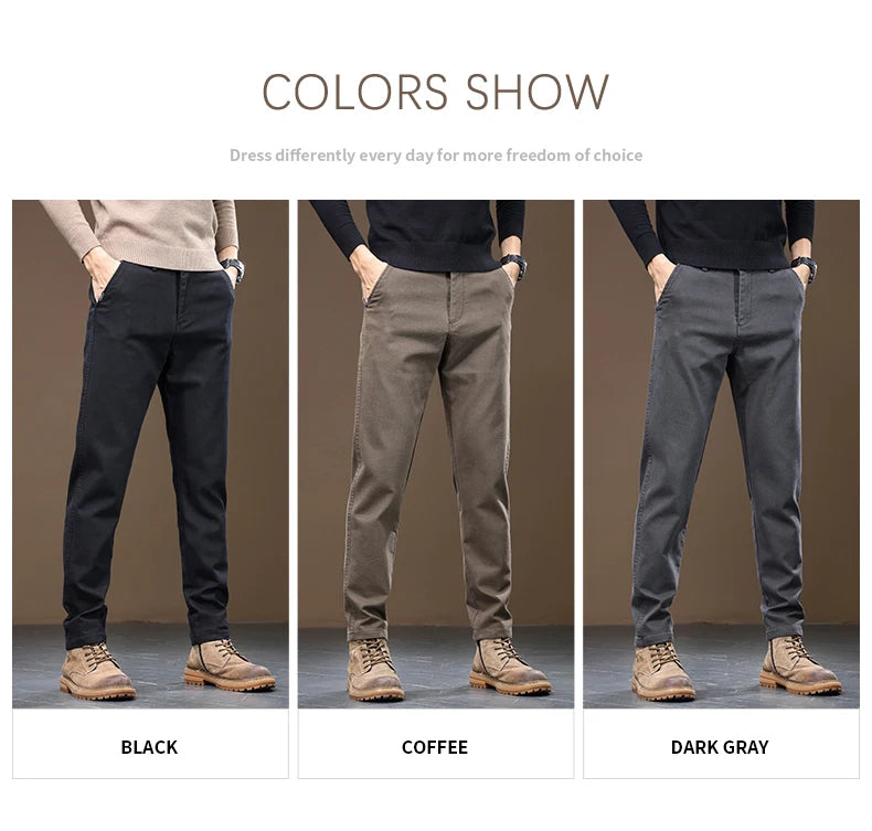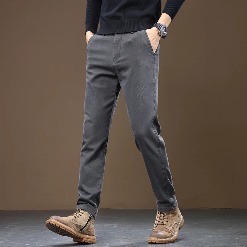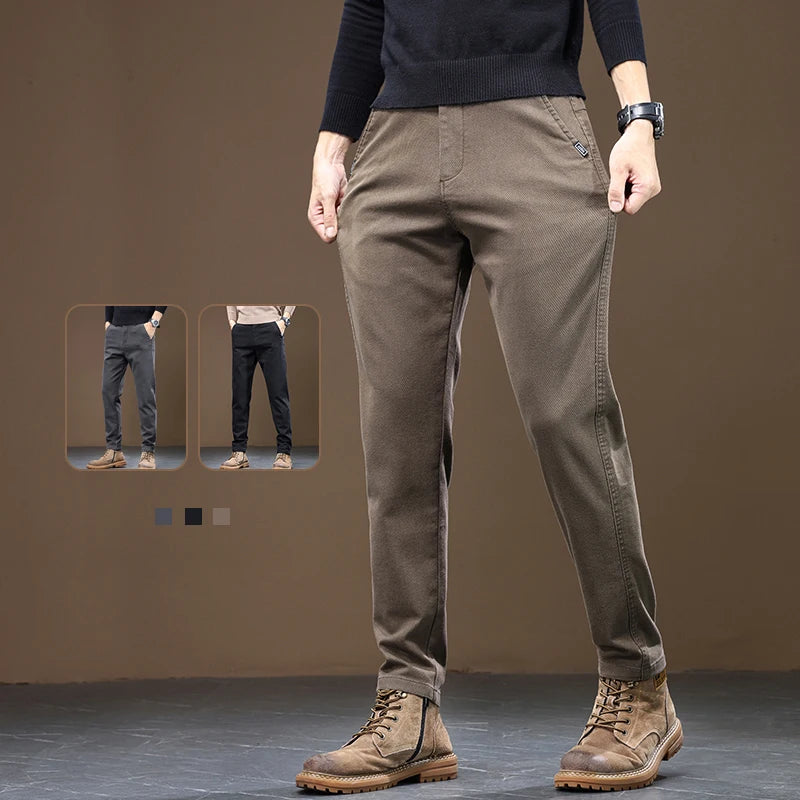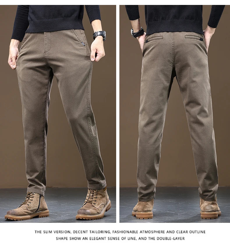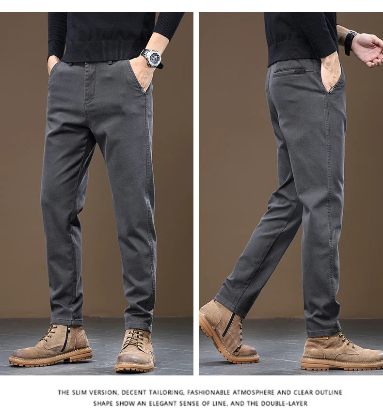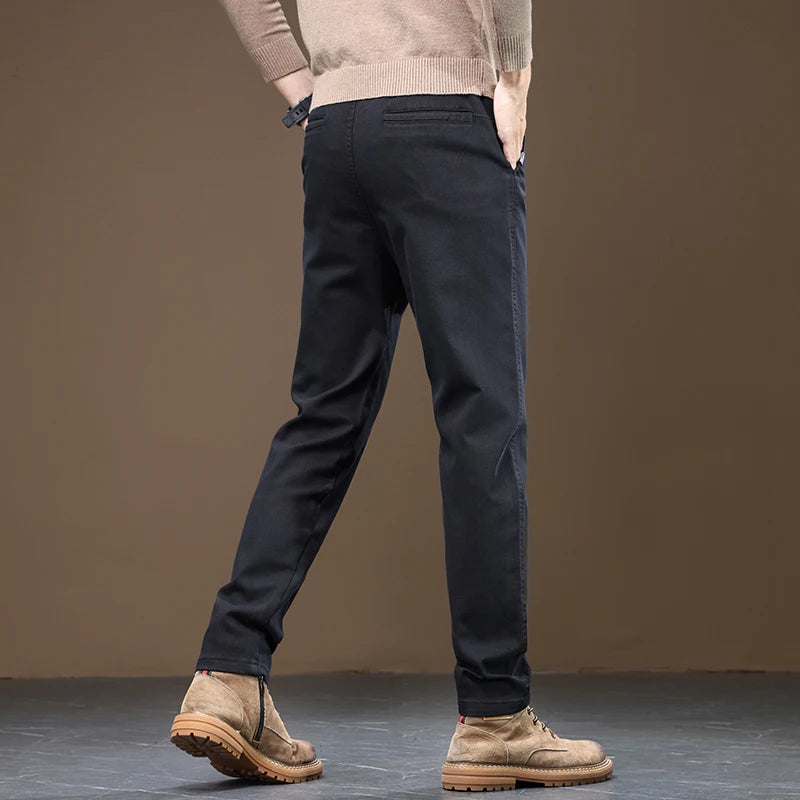 2024 Spring New Men's Slim Straight Pants Business Casual Imitation Denim Elastic Cotton Fashion Korean Male Coffee Trousers