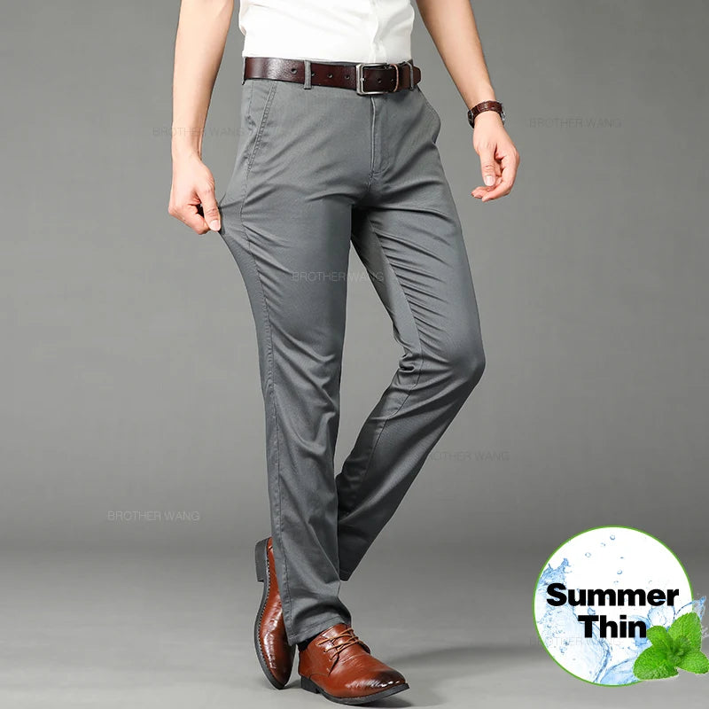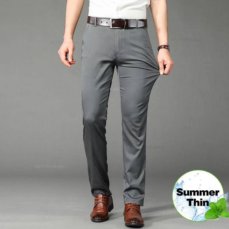 2024 Summer Men's Thin Casual Pants Highly Elastic Comfortable Fashion Business Straight Trousers Brand Clothes Khaki Black