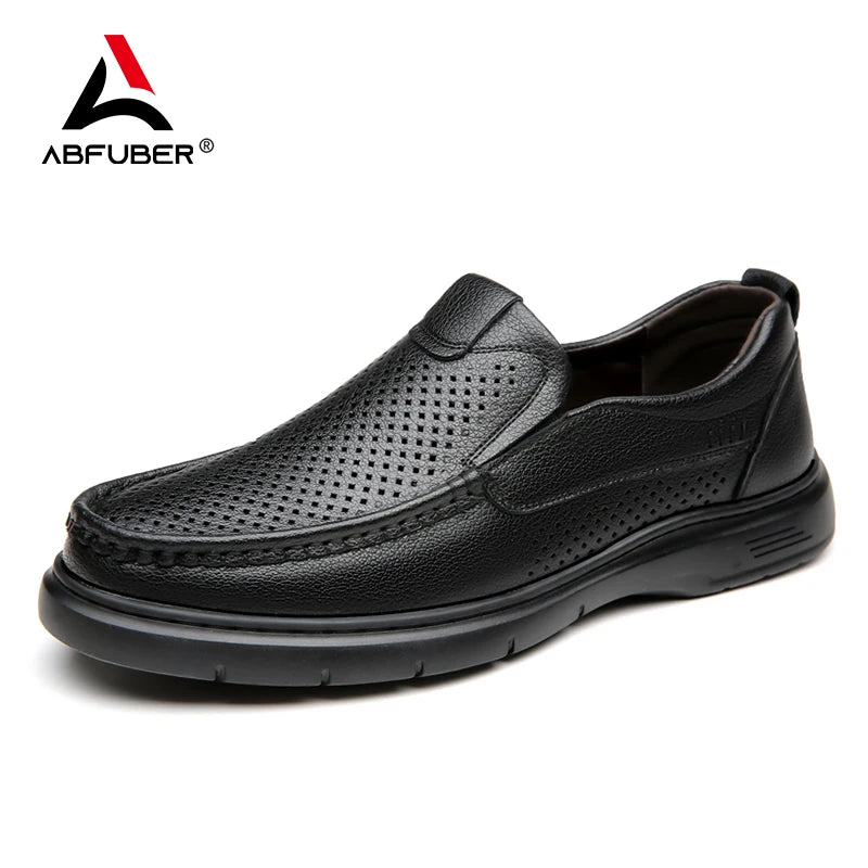 Mesh Breathable Dress Leather Men Shoes Summer Slip On Loafers Men Casual Leather Shoes Flats Hot Sale Driving Shoes Moccasins