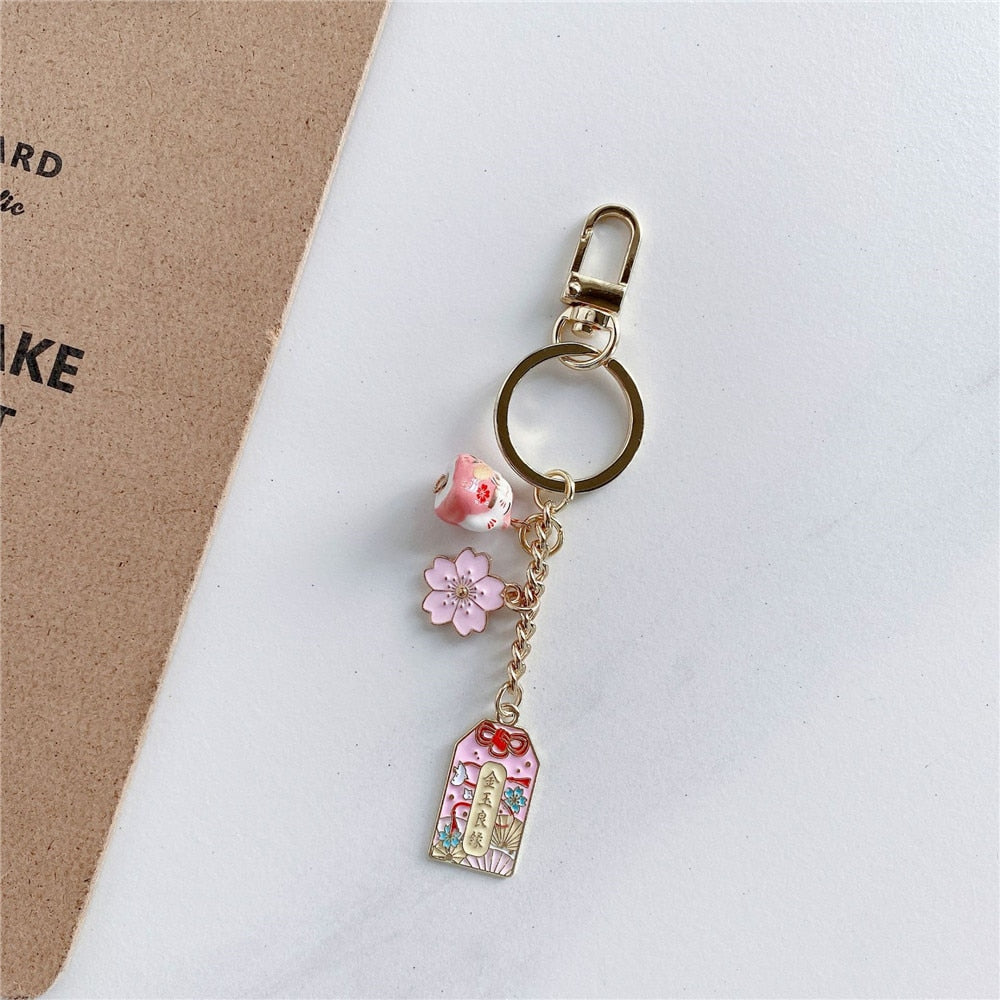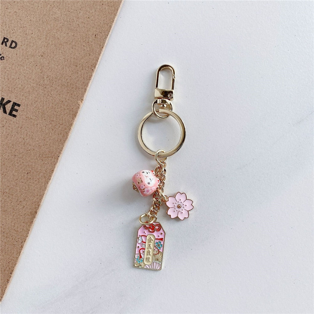 pattern: sakura Maneki Neko Omamori Sakura Amulet Lucky Cat Keychain Cute Pendant Clothes