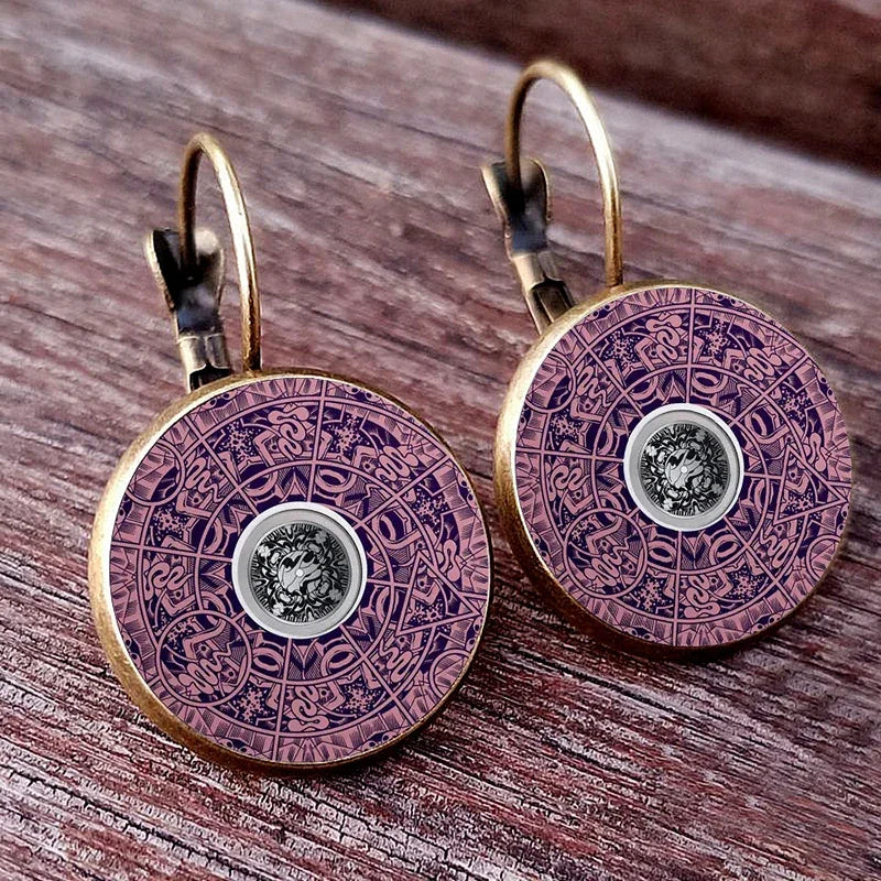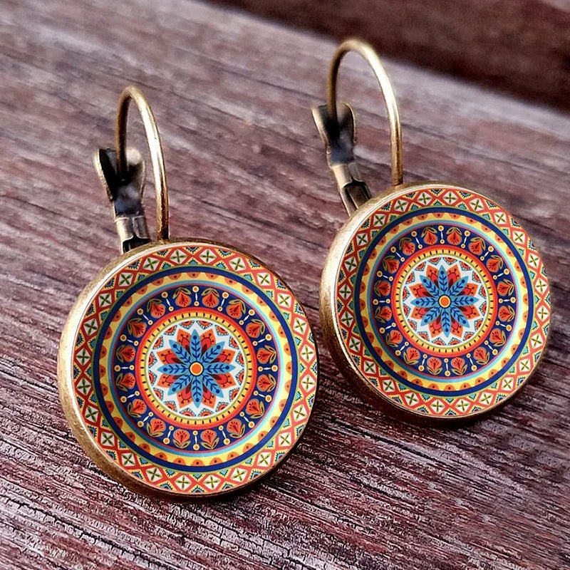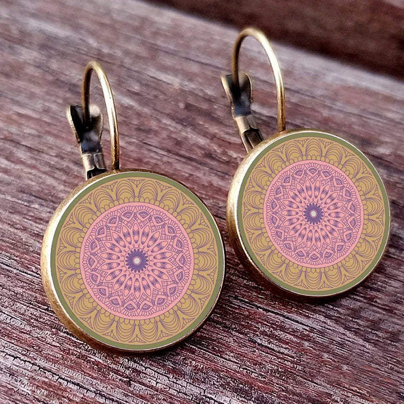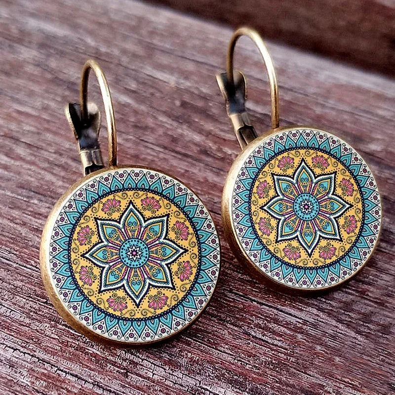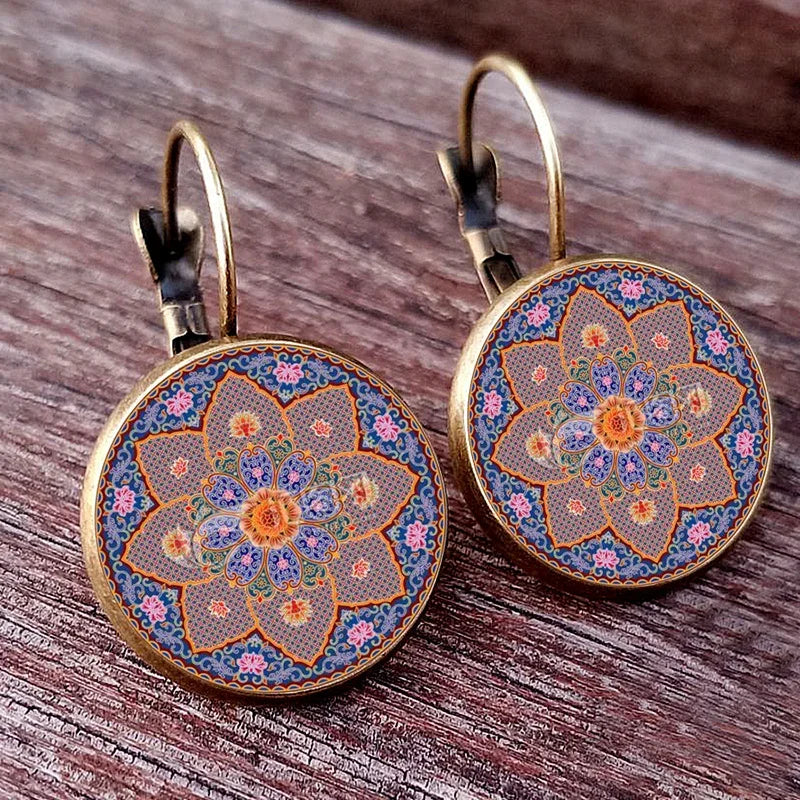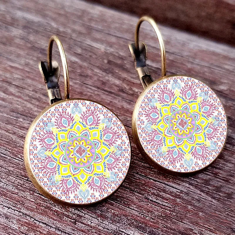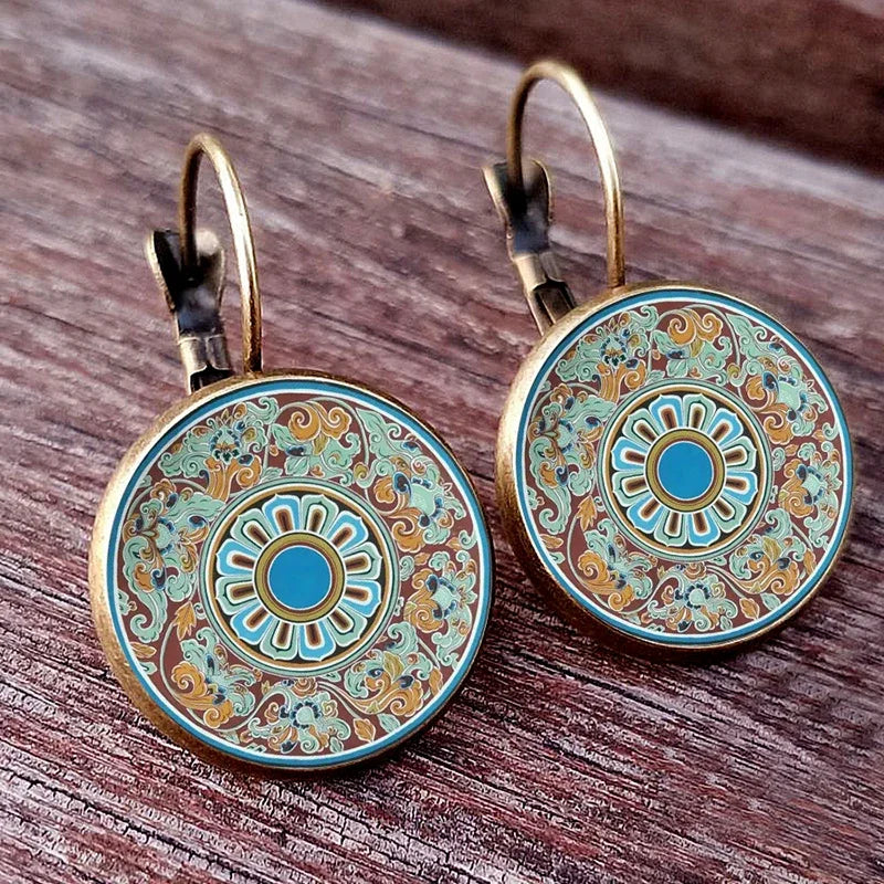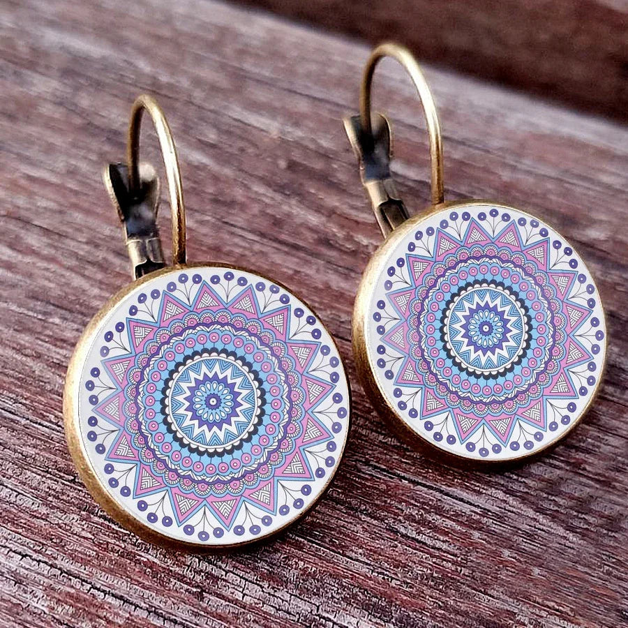 2023 Buddhism Chakra Glass Dome Cabochon Painted Geometric Earrings Blue and White Porcelain Pendant stud earrings for women