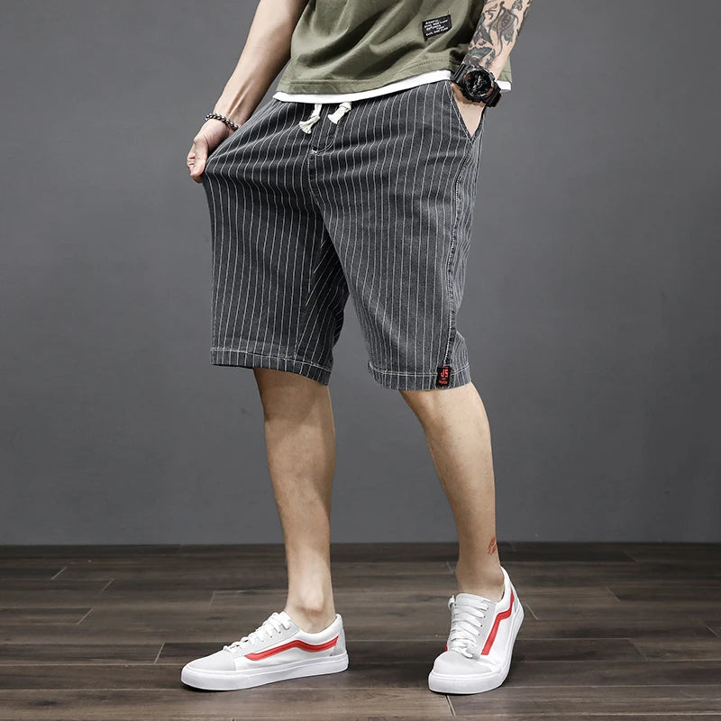 Plus Size 5XL 6XL 7XL Men's Striped Short Jeans 2020 Summer New Fashion Advanced Stretch Casual Denim Shorts Pants Male Brand
