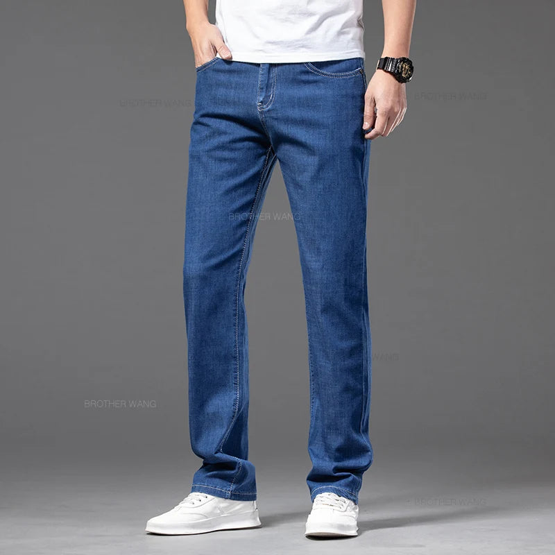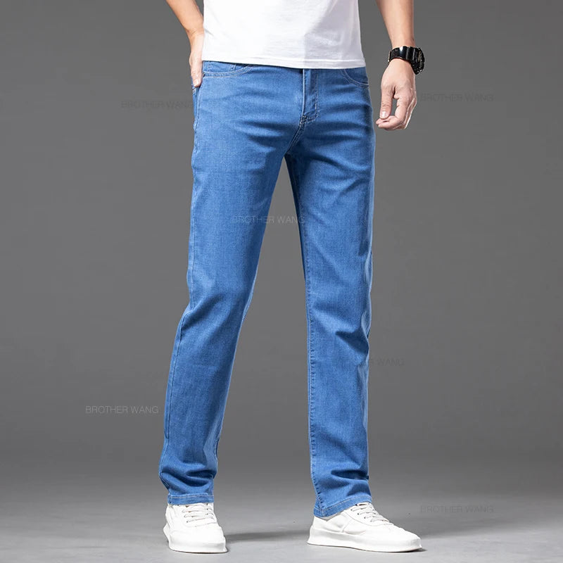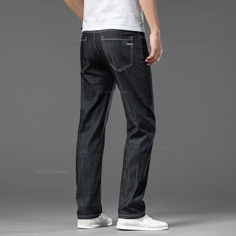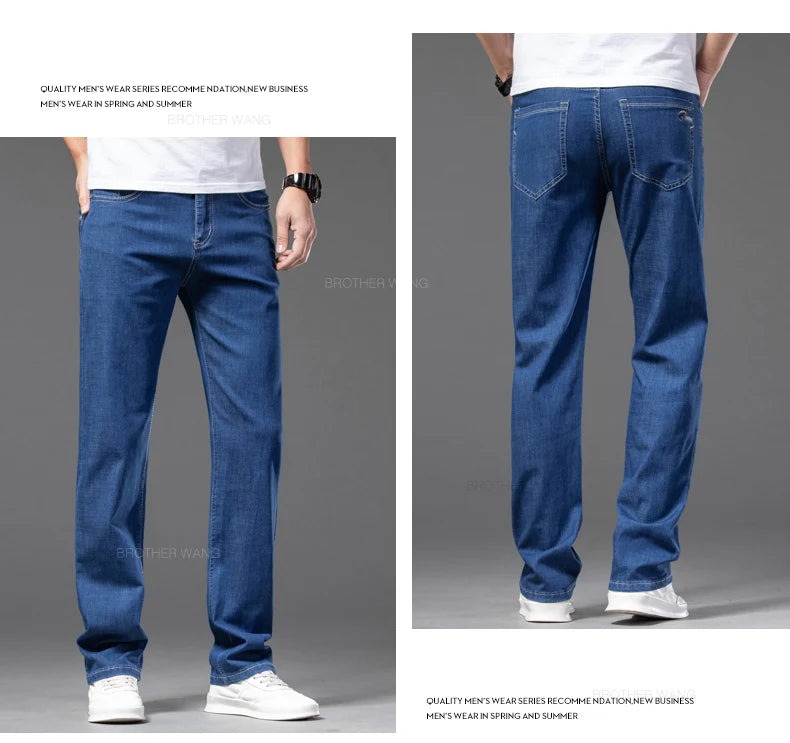 Plus Size Men's Thin Jeans Summer New Classic Straight Loose Elastic Denim Pants Fashion Business Casual Trousers 42 44 46