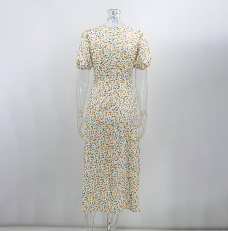 dress6: Puff Sleeve dress,v neck dress,French Style dress,print dress,Dresses