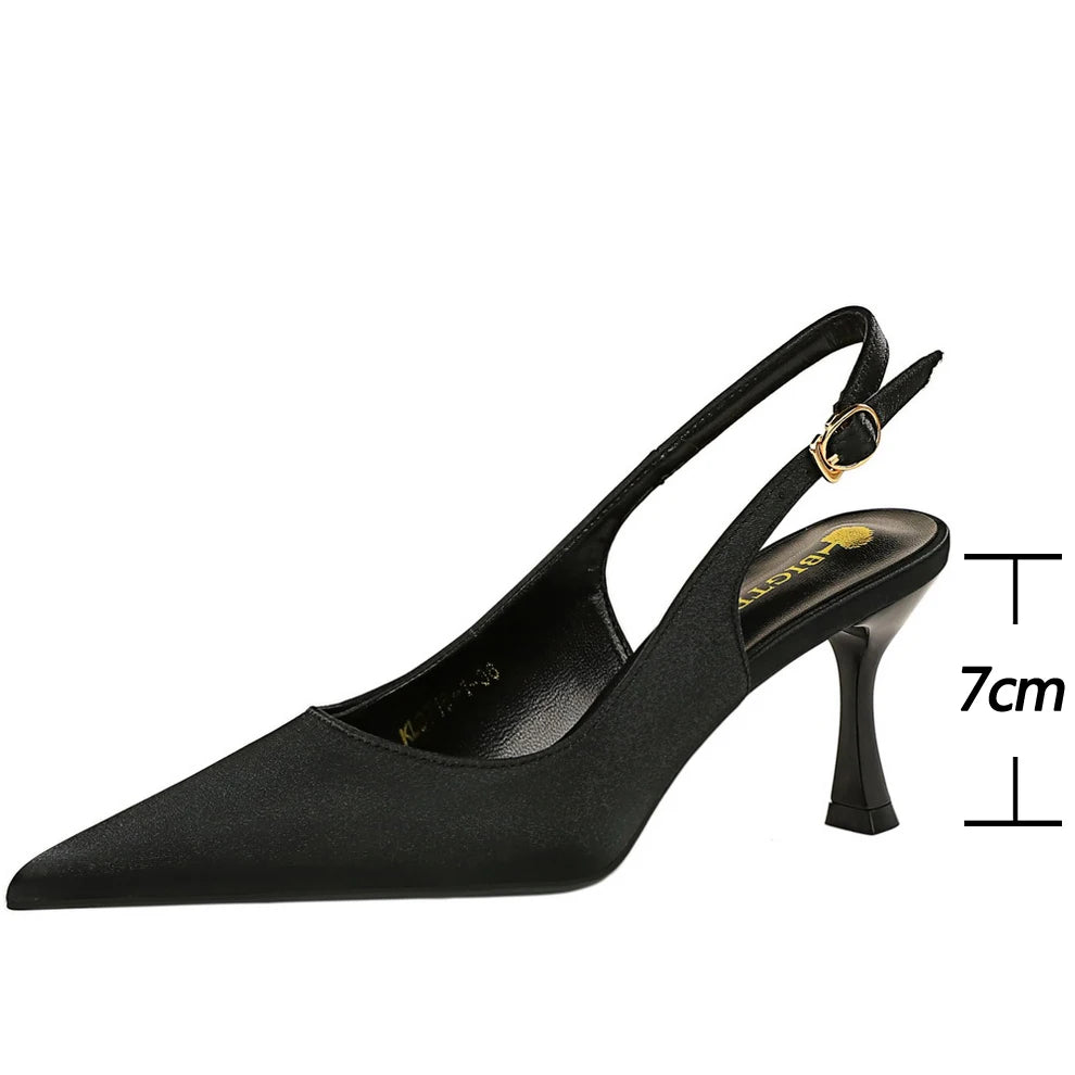 BIGTREE Shoes Women Sandals Pointed Kitten Heels Lady Summer Shoes Silks Satins Women Pumps Hollow Back Strap Heels Sandals 2023