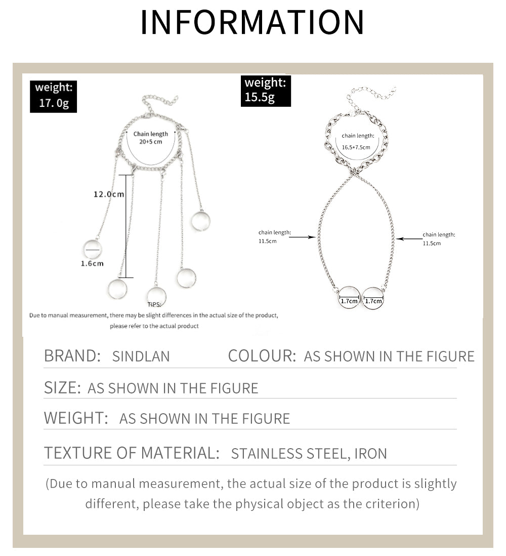 Sindlan Punk Geometric Silver Color Chain Wrist Bracelet