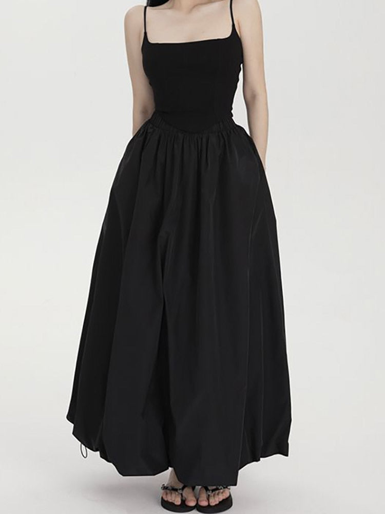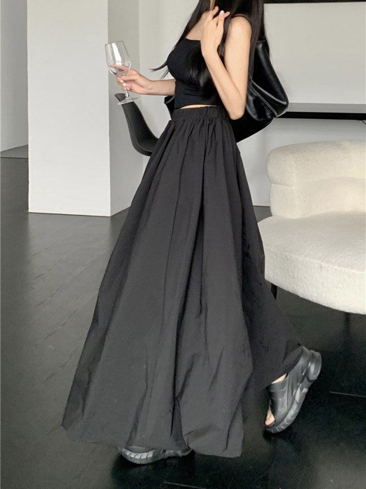 Skirt Women Korean Fashion Streetwear Black Elastic Waist A-line Vintage Loose Bubble Maxi Skirt Female Casual